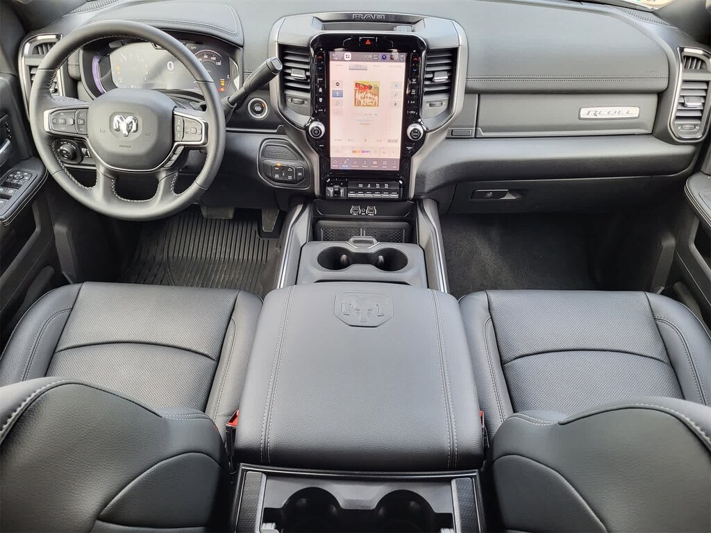 REBEL LEVEL 1 EQUIPMENT GROUP Rain Sensitive Windshield Wipers, Power Adjustable Pedals w/Memory, Body Color Door Handles, Overhead LED Lamps, Auto Dim Exterior Mirror, MOPAR Rock Rails w/Step Pad, Premium Overhead Console, 9 Alpine Speakers w/Subwoofer, Power Heated Fold Telescopic Mirrors w/Memory, Sport Performance Hood, Front Door Locks 2-Door Passive Entry, LED Interior Lighting, Auto High Beam Headlamp Control, LED Dome Lamp w/On/Off Switch, Universal Garage Door Opener, Exterior Mirrors w/Memory, MOPAR Front & Rear Rubber Floor Mats, Auto Dim Exterior Passenger Mirror, Sun Visors w/Illuminated Vanity Mirrors, Auto Adjust In Reverse Exterior Mirrors, BED CONVENIENCE GROUP MOPAR Spray In Bedliner, LED Bed Lighting, TRANSMISSION: 8-SPEED AUTO (8HP75-LCV) (STD), ENGINE: 6.4L V8 HEMI HD (STD). Ram Rebel with Bright White Clearcoat exterior and Black interior features a 8 Cylinder Engine with 405 HP at 5600 RPM*.