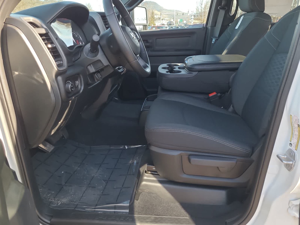 ENGINE: 6.7L I6 CUMMINS HO TURBO DIESEL Selective Catalytic Reduction (Urea), Dual 730 Amp Maintenance Free Batteries, GVWR: 11,800 lb, Cummins Turbo Diesel Badge, Heavy Duty Engine Cooling, Current Generation Engine Controller, Diesel Exhaust Brake, Supplemental Heater, 3.42 Axle Ratio, Front Bumper Sight Shields, Capless Fuel Fill w/o Discriminator, TRADESMAN LEVEL 2A EQUIPMENT GROUP Convenience Group, For Details Visit DriveUconnect.com, For More Info, Call 800-643-2112, Emergency Vehicle Alert System (EVAS), 12 Touchscreen Display, Mirror Running Lights, Exterior 115V AC Outlet, Alexa Built-In, Power-Adjustable Convex Aux Mirrors, Disassociated Touchscreen Display, Matte Black Mesh w/Chrome Grille, 115V Auxiliary Front Power Outlet, Center Hub, Rear View Auto Dim Mirror, Rear Power Sliding Window, Tinted Acoustic Windshield Glass, GPS Navigation, Bright Rear Bumper, Exterior Mirrors w/Heating Element, Chrome Grille Surround, MOPAR Black Tubular Side Steps, SiriusXM w/360L, Connected Travel & Traffic Services, Wheels: 18 x 8.0 Steel Chrome Clad, Carpet Floor Covering, Off-Road Information Pages, Trailer Tow Pages, 400W Inverter, BED UTILITY GROUP MOPAR Spray In Bedliner, LED Bed Lighting, MOPAR Deployable Bed Step, ENGINE: 6.4L V8 HEMI HD (STD), BLACK, CLOTH 40/20/40 BENCH SEAT. Ram Tradesman with Bright White Clearcoat exterior and Black interior features a Straight 6 Cylinder Engine with 430 HP at 2800 RPM*.