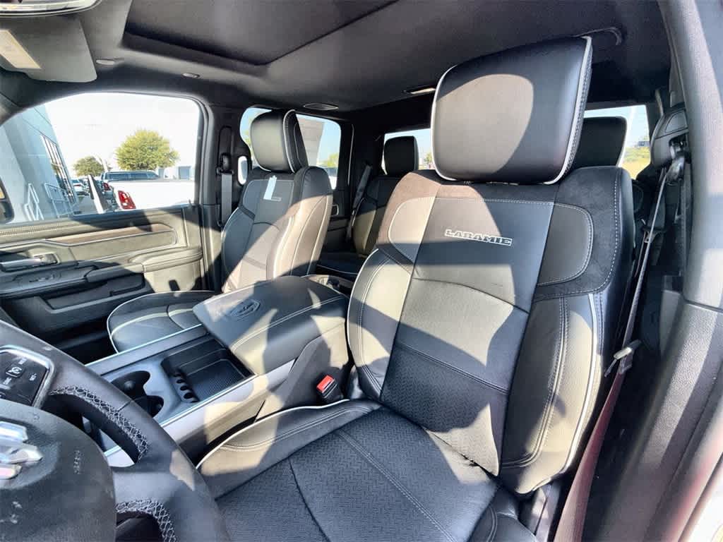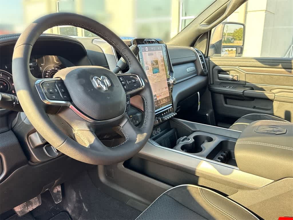 ENGINE: 6.7L I6 CUMMINS HO TURBO DIESEL Selective Catalytic Reduction (Urea), Dual 730 Amp Maintenance Free Batteries, Cummins Turbo Diesel Badge, Heavy Duty Engine Cooling, Current Generation Engine Controller, Diesel Exhaust Brake, Supplemental Heater, 3.42 Axle Ratio, Front Bumper Sight Shields, Capless Fuel Fill w/o Discriminator, TOWING TECHNOLOGY GROUP CTR Stop Lamp w/Cargo View Camera, Surround View Camera System, Trailer Tire Pressure Monitoring System, Trailer Reverse Guidance, LARAMIE LEVEL 1 PLUS EQUIPMENT GROUP CTR Stop Lamp w/Cargo View Camera, Rain Sensitive Windshield Wipers, Power Adjustable Pedals w/Memory, LED Bed Lighting, Traffic Sign Recognition, Adaptive Steering System, Auto Dimming Exterior Mirrors, Drowsy Driver Detection, MOPAR Deployable Bed Step, Foam Bottle Insert (Door Trim Panel), Active Lane Management System, Power Heat Fold Memory Telescopic Mirrors, MOPAR Spray In Bedliner, Remote Tailgate Release, Auto High Beam Headlamp Control, Exterior Mirrors w/Memory, 2nd Row In Floor Storage Bins, Auto Dimming Exterior Passenger Mirror, Auto Adjust In Reverse Exterior Mirrors, DUAL REAR WHEELS Clearance Lamps, Tires: LT235/80R17E BSW All Season, 17 Steel Spare Wheel, Box & Rear Fender Clearance Lamps, Center Hub, 6000# Front Axle w/Hub Ext, Wheels: 17 x 6.0 Polished Aluminum, Nexen Brand Tires, GVWR: 14,000 lb, POWER SUNROOF, TRANSMISSION: 8-SPEED TORQUEFLITE HD AUTOMATIC, BLACK, LEATHER TRIMMED BUCKET SEATS Bucket Seats, Dual Wireless Charging Pad, Full Length Upgraded Floor Console.