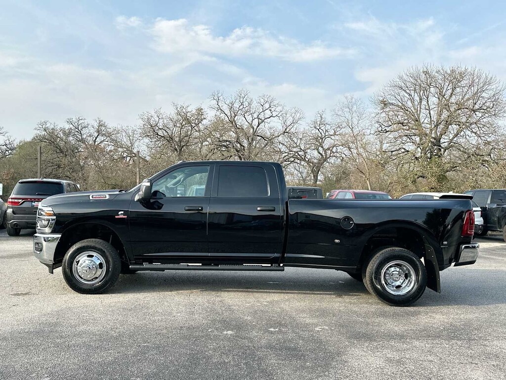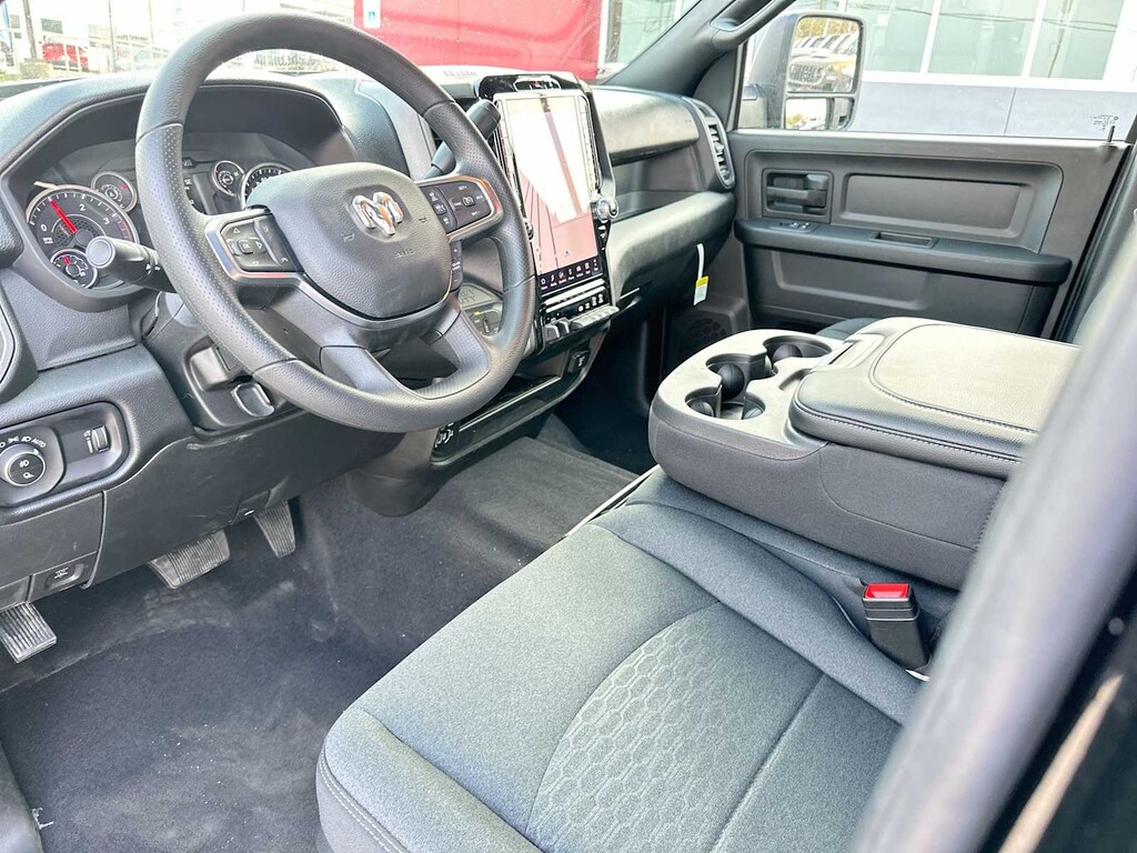 ENGINE: 6.7L I6 CUMMINS HO TURBO DIESEL Selective Catalytic Reduction (Urea), Dual 730 Amp Maintenance Free Batteries, Cummins Turbo Diesel Badge, Heavy Duty Engine Cooling, Current Generation Engine Controller, Diesel Exhaust Brake, Supplemental Heater, 3.42 Axle Ratio, Front Bumper Sight Shields, Capless Fuel Fill w/o Discriminator, TRADESMAN LEVEL 2A EQUIPMENT GROUP Convenience Group, For Details Visit DriveUconnect.com, For More Info, Call 800-643-2112, Emergency Vehicle Alert System (EVAS), 12 Touchscreen Display, Mirror Running Lights, Exterior 115V AC Outlet, Alexa Built-In, Power-Adjustable Convex Aux Mirrors, Disassociated Touchscreen Display, Bright Wheel Skins, Matte Black Mesh w/Chrome Grille, 115V Auxiliary Front Power Outlet, Center Hub, Rear View Auto Dim Mirror, Rear Power Sliding Window, Tinted Acoustic Windshield Glass, GPS Navigation, Bright Rear Bumper, Exterior Mirrors w/Heating Element, Chrome Grille Surround, MOPAR Black Tubular Side Steps, SiriusXM w/360L, Connected Travel & Traffic Services, Carpet Floor Covering, Off-Road Information Pages, Trailer Tow Pages, 400W Inverter, HD Radio, Power, TOWING TECHNOLOGY GROUP CTR Stop Lamp w/Cargo View Camera, Forward & Reverse Utility Lights, Surround View Camera System, Blind Spot & Cross Path Detection, LED Tail Lamps, Red Tail Lamp Bezels, Power Heated Fold Telescopic Mirrors, Exterior Mirrors w/Supplemental Signals, Exterior Mirrors Courtesy Lamps, Trailer Tire Pressure Monitoring System, Auto Power-Folding Mirrors, Exterior Mirrors w/Heating Element, Mirror Running Lights, Power Adjust Mirrors, Power Telescoping Mirrors, Trailer Reverse Guidance, Power-Adjustable Convex Aux Mirrors, DUAL REAR WHEELS Clearance Lamps, Tires: LT235/80R17E BSW All Season, 17 Steel Spare Wheel, Box & Rear Fender Clearance Lamps, 6000# Front Axle w/Hub Ext, Nexen Brand Tires, GVWR: 14,000 lb, Rear Wheelhouse Liners, TRANSMISSION: 8-SPEED TORQUEFLITE HD AUTOMATIC Ram Tradesman with Diamond Black Crystal Pearlcoat exterior and Black interior features a Straight 6 Cylinder Engine with 430 HP at 2800 RPM*.