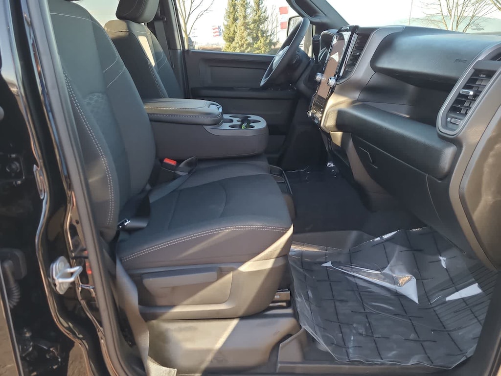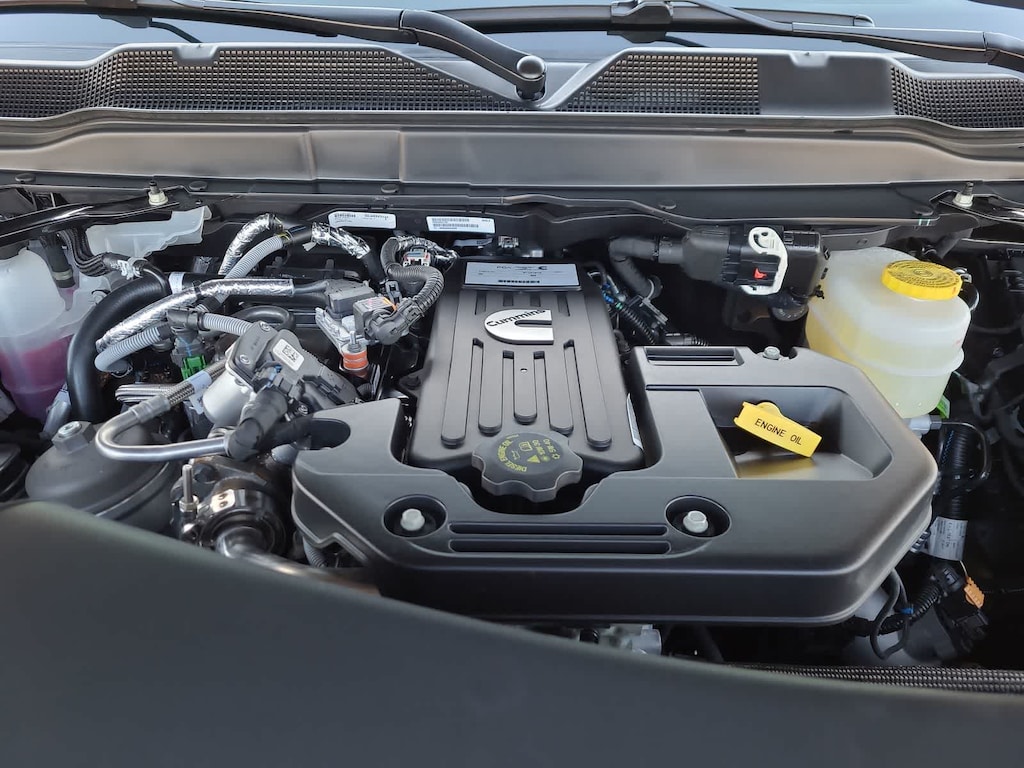 ENGINE: 6.7L I6 CUMMINS HO TURBO DIESEL Selective Catalytic Reduction (Urea), Dual 730 Amp Maintenance Free Batteries, Cummins Turbo Diesel Badge, Heavy Duty Engine Cooling, Current Generation Engine Controller, Diesel Exhaust Brake, Supplemental Heater, 3.42 Axle Ratio, Front Bumper Sight Shields, Capless Fuel Fill w/o Discriminator, TRADESMAN LEVEL 2A EQUIPMENT GROUP Convenience Group, For Details Visit DriveUconnect.com, For More Info, Call 800-643-2112, Emergency Vehicle Alert System (EVAS), 12 Touchscreen Display, Mirror Running Lights, Exterior 115V AC Outlet, Alexa Built-In, Power-Adjustable Convex Aux Mirrors, Disassociated Touchscreen Display, Bright Wheel Skins, Matte Black Mesh w/Chrome Grille, 115V Auxiliary Front Power Outlet, Center Hub, Rear View Auto Dim Mirror, Rear Power Sliding Window, Tinted Acoustic Windshield Glass, GPS Navigation, Bright Rear Bumper, Exterior Mirrors w/Heating Element, Chrome Grille Surround, MOPAR Black Tubular Side Steps, SiriusXM w/360L, Connected Travel & Traffic Services, Carpet Floor Covering, Off-Road Information Pages, Trailer Tow Pages, 400W Inverter, HD Radio, Power, SAFETY GROUP Active Lane Management System, Auto High Beam Headlamp Control, Blind Spot & Cross Path Detection, LED Tail Lamps, Red Tail Lamp Bezels, Cluster 7.0 TFT Color Display, Rain Sensitive Windshield Wipers, Rear View Auto Dim Mirror, Drowsy Driver Detection, Steering Wheel Mounted Audio Controls, Luxury Steering Wheel, Adaptive Steering System, TOWING TECHNOLOGY GROUP CTR Stop Lamp w/Cargo View Camera, Forward & Reverse Utility Lights, Surround View Camera System, Blind Spot & Cross Path Detection, LED Tail Lamps, Red Tail Lamp Bezels, Power Heated Fold Telescopic Mirrors, Exterior Mirrors w/Supplemental Signals, Exterior Mirrors Courtesy Lamps, Trailer Tire Pressure Monitoring System, Auto Power-Folding Mirrors, Exterior Mirrors w/Heating Element, Mirror Running Lights, Power Adjust Mirrors, Power Telescoping Mirrors, Trailer Reverse Guidance, Power-Adjustable Convex Aux Mirrors, DUAL REAR WHEELS Clearance Lamps, Tires: LT235/80R17E BSW All Season, 17 Steel Spare Wheel, Box & Rear Fender Clearance Lamps, 6000# Front Axle w/Hub Ext, Nexen Brand Tires, GVWR: 14,000 lb, Rear Wheelhouse Liners, BED UTILITY GROUP MOPAR Spray In Bedliner, LED Bed Lighting, MOPAR Deployable Bed Step, TRANSMISSION: 8-SPEED TORQUEFLITE HD AUTOMATIC, BLACK, CLOTH 40/20/40 BENCH SEAT. Ram Tradesman with Diamond Black Crystal Pearlcoat exterior and Black interior features a Straight 6 Cylinder Engine with 430 HP at 2800 RPM*.