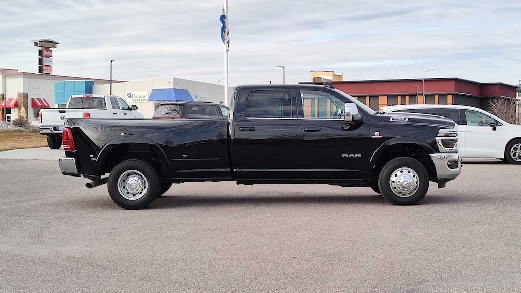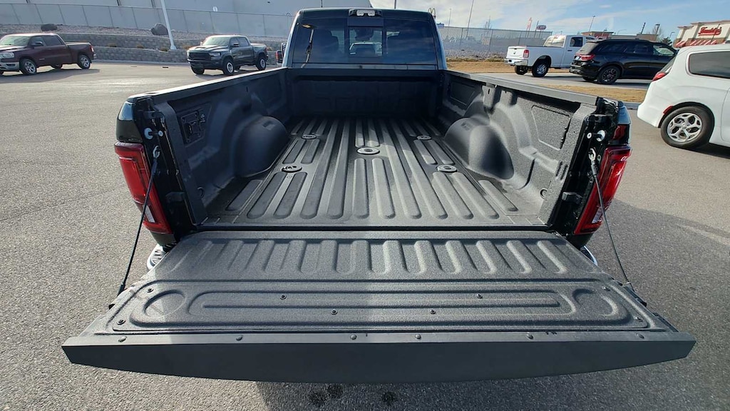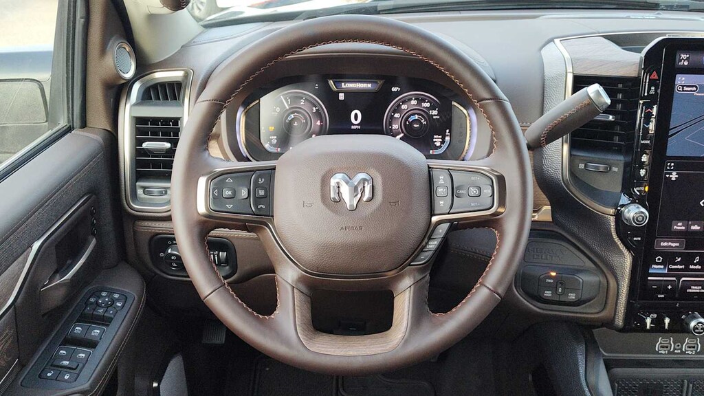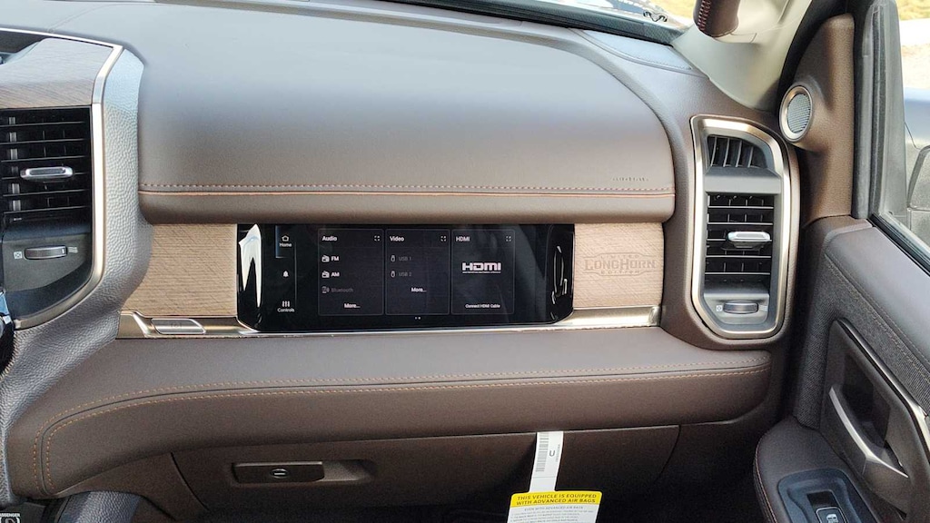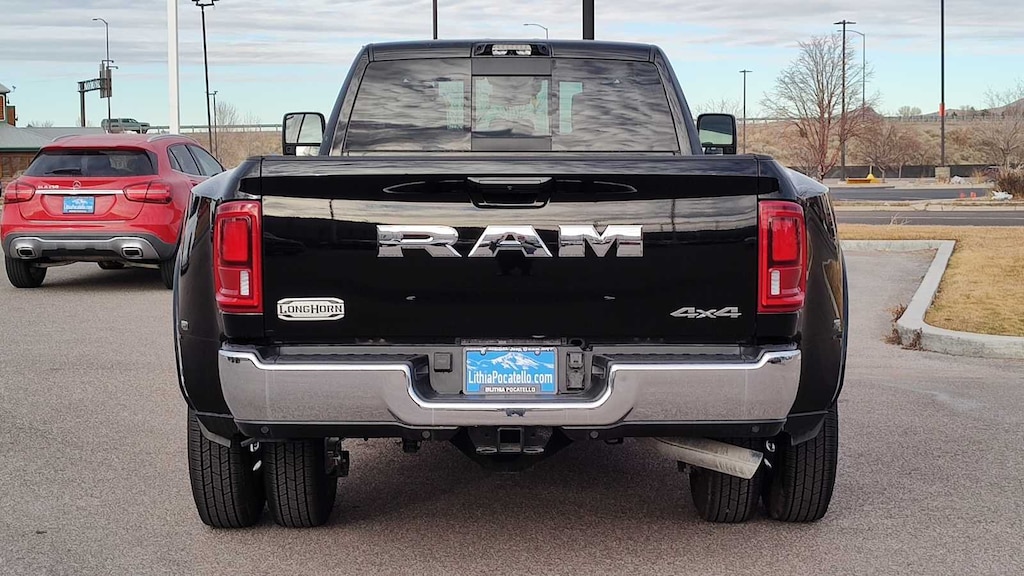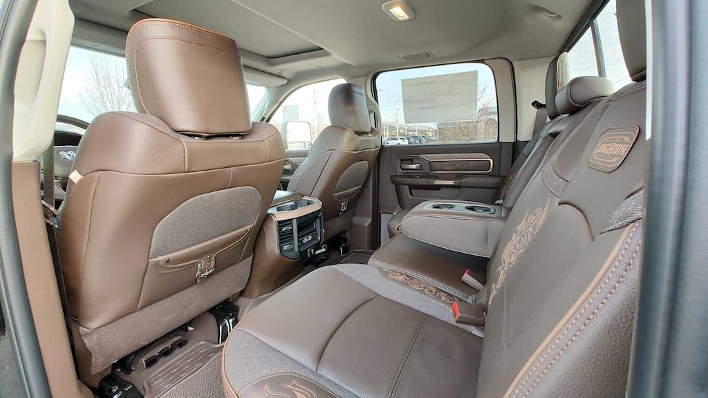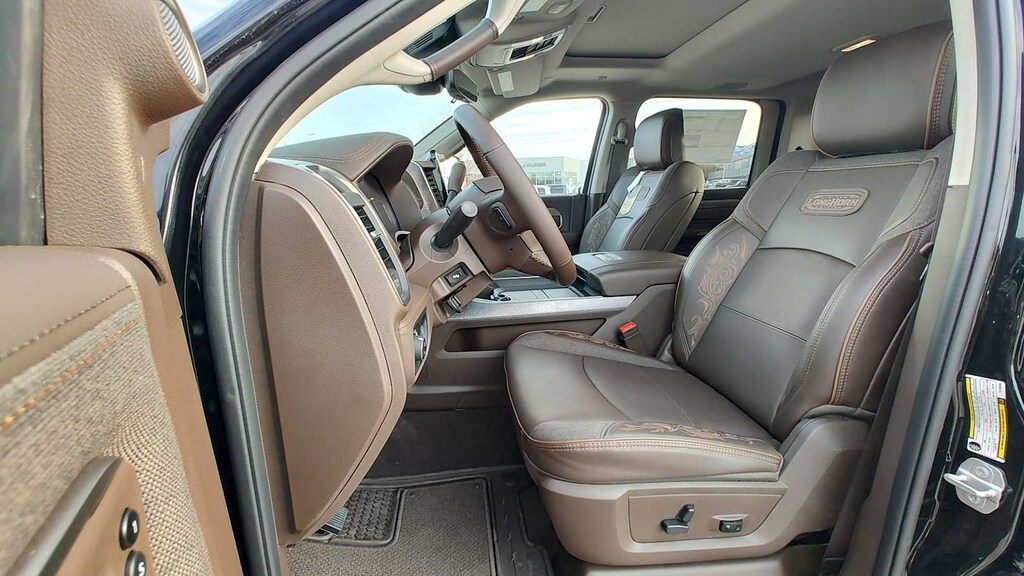 ENGINE: 6.7L I6 CUMMINS HO TURBO DIESEL Selective Catalytic Reduction (Urea), Dual 730 Amp Maintenance Free Batteries, Cummins Turbo Diesel Badge, Heavy Duty Engine Cooling, Current Generation Engine Controller, Diesel Exhaust Brake, Supplemental Heater, 3.42 Axle Ratio, Front Bumper Sight Shields, Capless Fuel Fill w/o Discriminator, LONGHORN LEVEL 1 EQUIPMENT GROUP Active Lane Management System, CTR Stop Lamp w/Cargo View Camera, Surround View Camera System, LED Bed Lighting, Power Deployable Running Boards, Traffic Sign Recognition, Trailer Tire Pressure Monitoring System, Adaptive Steering System, MOPAR Spray In Bedliner, Drowsy Driver Detection, Trailer Reverse Guidance, Digital Rearview Mirror, DUAL REAR WHEELS Clearance Lamps, Tires: LT235/80R17E BSW All Season, 17 Steel Spare Wheel, Box & Rear Fender Clearance Lamps, Center Hub, 6000# Front Axle w/Hub Ext, Wheels: 17 x 6.0 Polished Aluminum, Nexen Brand Tires, GVWR: 14,000 lb, POWER SUNROOF, QUICK ORDER PACKAGE 24K LONGHORN Engine: 6.7L I6 Cummins HO Turbo Diesel, Transmission: 8-Speed TorqueFlite HD Automatic, Luxury Front & Rear Floor Mats, Warm Chrome Key Fob, Longhorn Instrument Cluster Theme 3, Premium Door Trim Panel, I/P Aluminum Litho Bezels w/Real Wood #1, Longhorn Badge, TRANSMISSION: 8-SPEED TORQUEFLITE HD AUTOMATIC. Ram Longhorn with Diamond Black Crystal Pearlcoat exterior and Bison Brown interior features a Straight 6 Cylinder Engine with 430 HP at 2800 RPM*. Approx. Original Base Sticker Price: $104,000*.