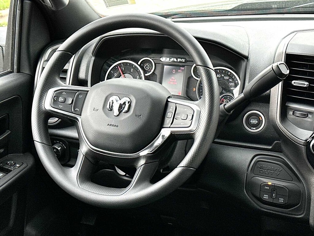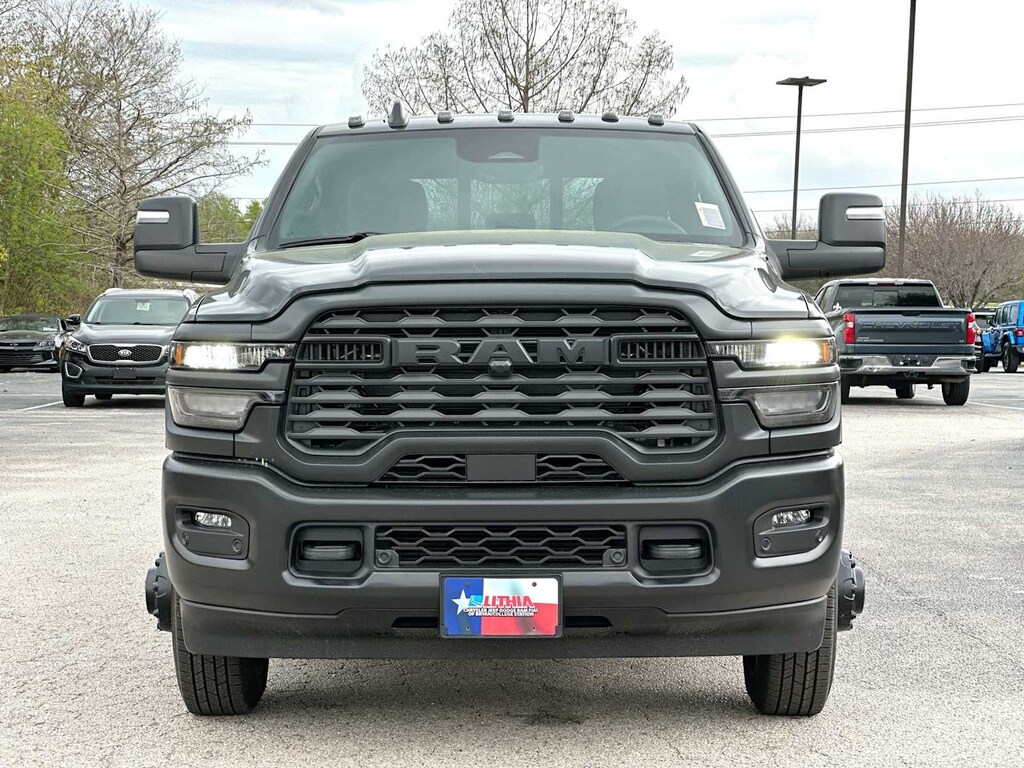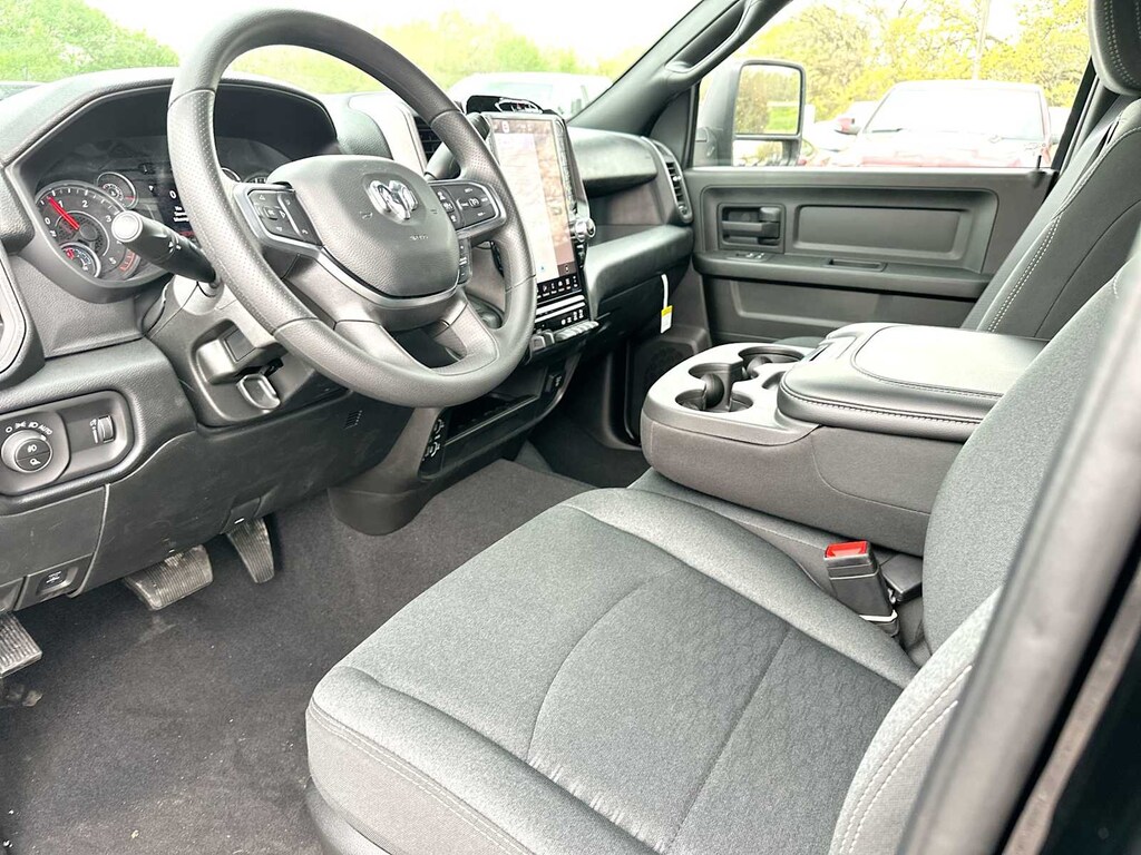 ENGINE: 6.7L I6 CUMMINS HO TURBO DIESEL Selective Catalytic Reduction (Urea), Dual 730 Amp Maintenance Free Batteries, Cummins Turbo Diesel Badge, Heavy Duty Engine Cooling, Current Generation Engine Controller, Diesel Exhaust Brake, Supplemental Heater, 3.42 Axle Ratio, Front Bumper Sight Shields, Capless Fuel Fill w/o Discriminator, TRADESMAN LEVEL 1 EQUIPMENT GROUP Convenience Group, Rear View Auto Dim Mirror, For Details Visit DriveUconnect.com, For More Info, Call 800-643-2112, Rear Power Sliding Window, Emergency Vehicle Alert System (EVAS), 12 Touchscreen Display, Tinted Acoustic Windshield Glass, GPS Navigation, Exterior Mirrors w/Heating Element, MOPAR Black Tubular Side Steps, SiriusXM w/360L, Connected Travel & Traffic Services, Mirror Running Lights, Exterior 115V AC Outlet, Alexa Built-In, Carpet Floor Covering, Power-Adjustable Convex Aux Mirrors, Off-Road Information Pages, Trailer Tow Pages, 400W Inverter, Disassociated Touchscreen Display, HD Radio, Power Heat Fold Telescopic Mirrors, Radio: Uconnect 5 Nav w/12.0 Display, Exterior Mirrors w/Supplemental Signals, Exterior Mirrors Courtesy Lamps, Air, DUAL REAR WHEELS Clearance Lamps, Tires: LT235/80R17E BSW All Season, 17 Steel Spare Wheel, Box & Rear Fender Clearance Lamps, 6000# Front Axle w/Hub Ext, Nexen Brand Tires, GVWR: 14,000 lb, Rear Wheelhouse Liners, TRANSMISSION: 8-SPEED TORQUEFLITE HD AUTOMATIC, BLACK, CLOTH 40/20/40 BENCH SEAT. Ram Tradesman with Diamond Black Crystal Pearlcoat exterior and Black interior features a Straight 6 Cylinder Engine with 405 HP at 5600 RPM*.