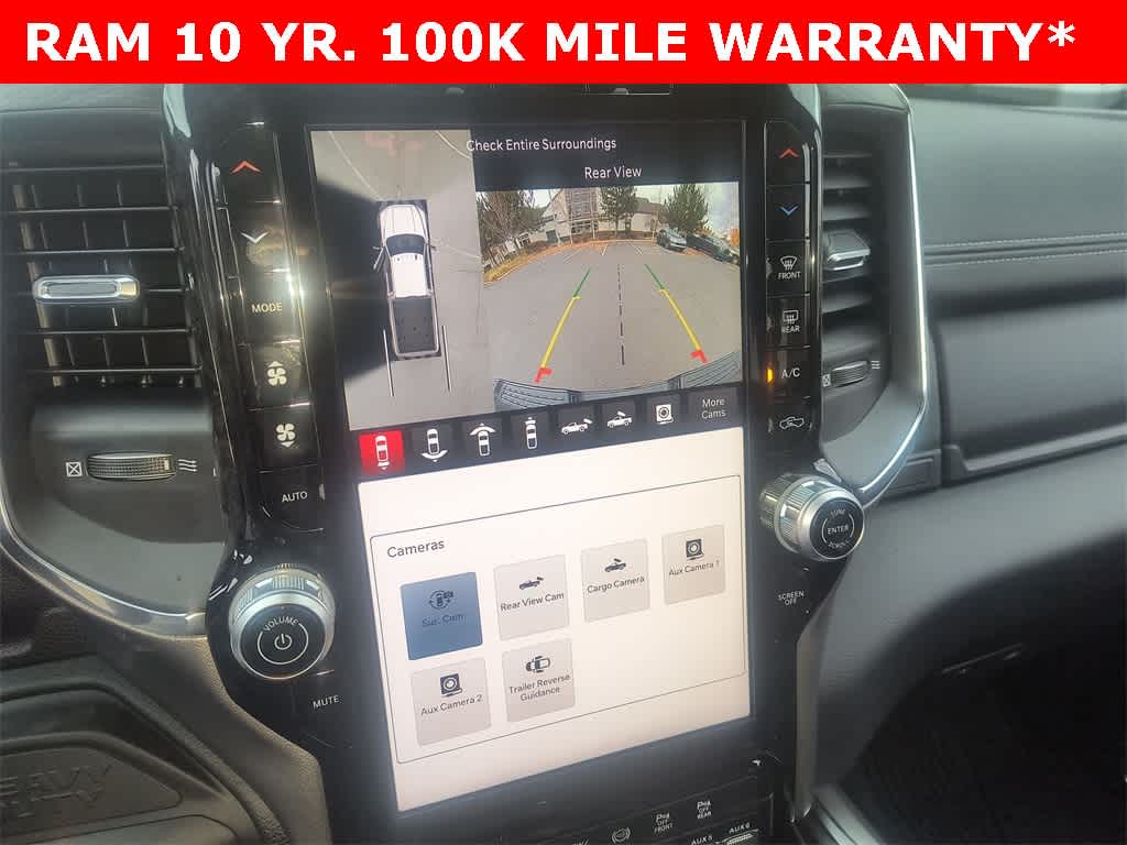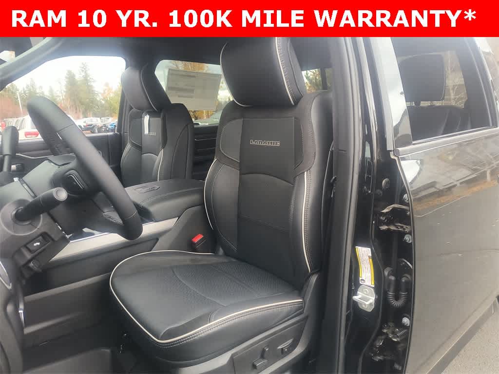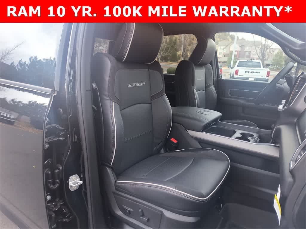 ENGINE: 6.7L I6 CUMMINS HO TURBO DIESEL Selective Catalytic Reduction (Urea), Dual 730 Amp Maintenance Free Batteries, Cummins Turbo Diesel Badge, Heavy Duty Engine Cooling, Current Generation Engine Controller, Diesel Exhaust Brake, Supplemental Heater, 3.42 Axle Ratio, Front Bumper Sight Shields, Capless Fuel Fill w/o Discriminator, TOWING TECHNOLOGY GROUP CTR Stop Lamp w/Cargo View Camera, Surround View Camera System, Trailer Tire Pressure Monitoring System, Trailer Reverse Guidance, LARAMIE LEVEL 1 PLUS EQUIPMENT GROUP CTR Stop Lamp w/Cargo View Camera, Rain Sensitive Windshield Wipers, Power Adjustable Pedals w/Memory, LED Bed Lighting, Traffic Sign Recognition, Adaptive Steering System, Auto Dimming Exterior Mirrors, Drowsy Driver Detection, MOPAR Deployable Bed Step, Foam Bottle Insert (Door Trim Panel), Active Lane Management System, Power Heat Fold Memory Telescopic Mirrors, MOPAR Spray In Bedliner, Remote Tailgate Release, Auto High Beam Headlamp Control, Exterior Mirrors w/Memory, 2nd Row In Floor Storage Bins, Auto Dimming Exterior Passenger Mirror, Auto Adjust In Reverse Exterior Mirrors, POWER SUNROOF, MOPAR FRONT & REAR RUBBER FLOOR MATS, TRANSMISSION: 8-SPEED TORQUEFLITE HD AUTOMATIC, BLACK, LEATHER TRIMMED BUCKET SEATS Bucket Seats, Dual Wireless Charging Pad, Full Length Upgraded Floor Console.