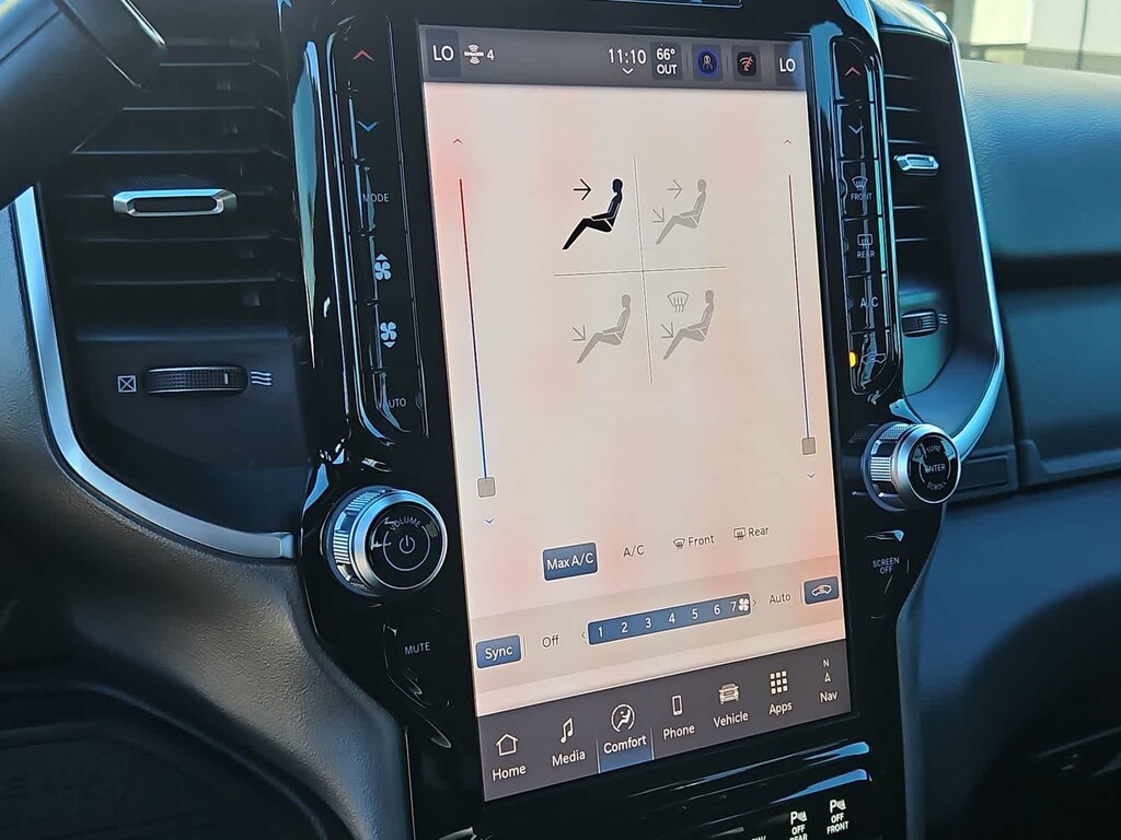 Our Big Horn cabin rewards you with satisfying features engineered for everyday use. Its easy to stay relaxed on the road with our Level 1 Plus Equipment Packages supportive cloth seats, a tilt-adjustable steering wheel, dual climate control, power accessories, pushbutton ignition, remote start, and keyless entry. Digital convenience comes into the picture with a Uconnect 5 12.0-inch touchscreen, a 3.5-inch driver display, WiFi compatibility, Apple CarPlay/Android Auto, Bluetooth, voice command, and an Alpine nine-speaker sound system.