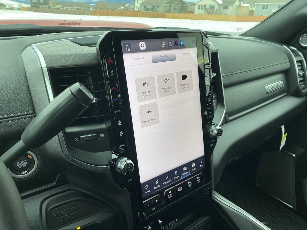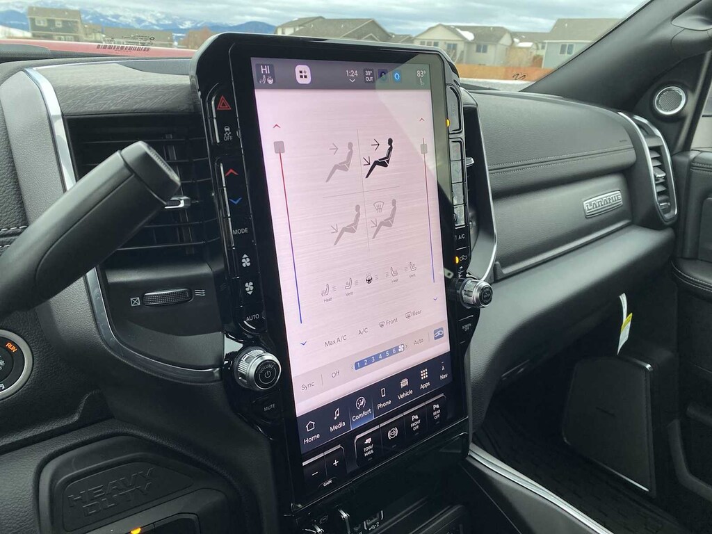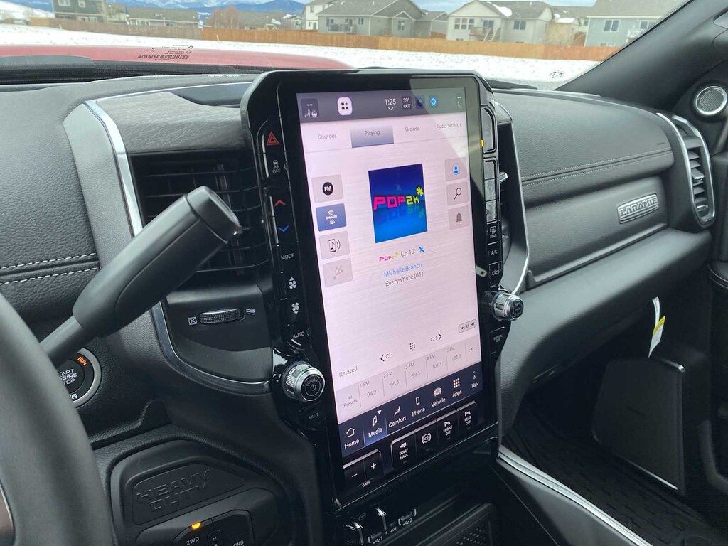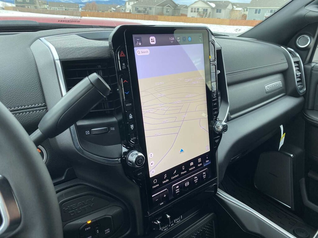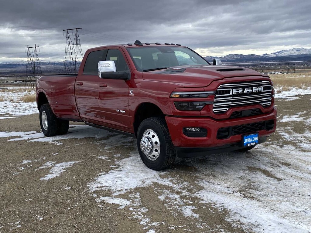 ENGINE: 6.7L I6 CUMMINS HO TURBO DIESEL Selective Catalytic Reduction (Urea), Dual 730 Amp Maintenance Free Batteries, Cummins Turbo Diesel Badge, Heavy Duty Engine Cooling, Current Generation Engine Controller, Diesel Exhaust Brake, Supplemental Heater, 3.42 Axle Ratio, Front Bumper Sight Shields, Capless Fuel Fill w/o Discriminator, LARAMIE LEVEL 2 PLUS EQUIPMENT GROUP Power Adjustable Pedals w/Memory, For Details Visit DriveUconnect.com, For More Info, Call 800-643-2112, Power Deployable Running Boards, Drowsy Driver Detection, MOPAR Deployable Bed Step, Active Lane Management System, Remote Tailgate Release, 17 Speaker harman/kardon® Premium Sound, 2nd Row In Floor Storage Bins, CTR Stop Lamp w/Cargo View Camera, Rain Sensitive Windshield Wipers, LED Bed Lighting, Traffic Sign Recognition, Adaptive Steering System, Auto Dimming Exterior Mirrors, Foam Bottle Insert (Door Trim Panel), 14.4 Touchscreen Display, Power Heat Fold Memory Telescopic Mirrors, Radio: Uconnect 5 Nav w/14.4 Display, MOPAR Spray In Bedliner, Auto High Beam Headlamp Control, Exterior Mirrors w/Memory, Auto Dimming Exterior Passenger Mirror, Auto, DUAL REAR WHEELS Clearance Lamps, Tires: LT235/80R17E BSW All Season, 17 Steel Spare Wheel, Box & Rear Fender Clearance Lamps, Center Hub, 6000# Front Axle w/Hub Ext, Wheels: 17 x 6.0 Polished Aluminum, Nexen Brand Tires, GVWR: 14,000 lb, MOPAR FRONT & REAR RUBBER FLOOR MATS, TRANSMISSION: 8-SPEED TORQUEFLITE HD AUTOMATIC, BLACK, LEATHER TRIMMED BUCKET SEATS Bucket Seats, Dual Wireless Charging Pad, Full Length Upgraded Floor Console. Ram Laramie with Molten Red Pearlcoat exterior and Black interior features a Straight 6 Cylinder Engine with 430 HP at 2800 RPM*.