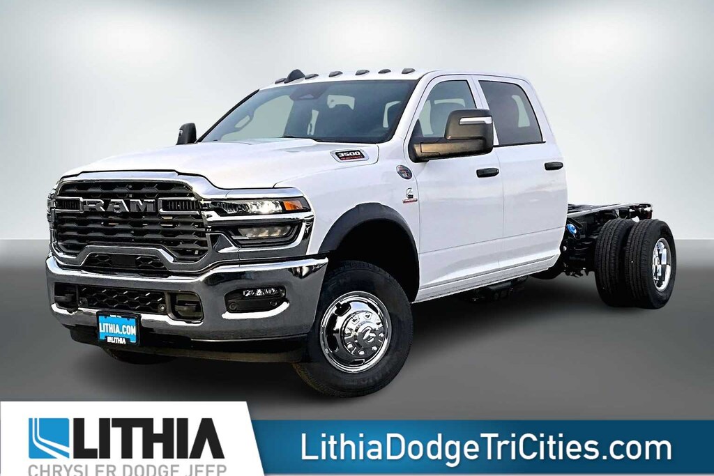 Lithia Chrysler Dodge Jeep Ram of Tri-Cities is pleased to offer this Bright White Clearcoat 2026 Ram 3500 Tradesman for purchase, this vehicle is well equipped with many features including:Chrome Appearance Group A (Bright Front Bumper, Bright Wheel Skins, Center Hub, Chrome Grille Surround, and Matte Black Mesh Grille with Chrome), Cold Weather Group (Engine Block Heater and MOPAR Winter Front Grille Cover), Quick Order Package 25A Tradesman, Safety Group (Adaptive Steering System, Auto High Beam Headlamp Control, Drowsy Driver Detection, Lane Keep Assist, Rain Sensitive Windshield Wipers, and Security Alarm), Tradesman Level 2 Equipment Group (115V Auxiliary Power Outlet, 12.0 Touchscreen Display, 400W Inverter, 4G LTE Wi-Fi Hot Spot, Air Conditioning ATC with Dual Zone Control, Alexa Built-in, Apple CarPlay, Black Exterior Mirrors, Black Power Heated Fold Telescope Mirrors, Black Wheel Flares, Connected Travel and Traffic Services, Connectivity - US/Canada, Digital Rearview Mirror, Disassociated Touchscreen Display, Exterior Mirrors Courtesy Lamps, Exterior Mirrors with Heating Element, Exterior Mirrors with Supplemental Signals, For Details, Visit DriveUconnect.com, For More Info, Call 800-643-2112, Global Telematics Box Module, Google Android Auto, GPS Antenna Input, GPS Navigation, HD Radio, Integrated Voice Command with Bluetooth, Manual Folding Exterior Mirrors, Manuarl Telescoping Mirrors, Mirror Running Lights, Off-Road Information Pages, Power Adjust Mirrors, Power Rear Sliding Window, Power-Adjustable Convex Aux Mirrors, Radio: Uconnect 5 Navigation with 12.0 Display, Rear Window Defroster, Remote Start System, SiriusXM Radio Service, SiriusXM with 360L, Temperature and Compass Gauge, Tinted Acoustic Windshield Glass, Trailer Brake Control, Trailer Light Check, and Trailer Tow Pages), 11.50 Dual Wheels Rear Axle, 2 Way Rear Headrest Seat, 4-Wheel Disc Brakes, 40/20/40 Split Bench Seat, 52 and 22 Gallon Dual Fuel Tanks, 6 Speakers, 6000# Front Axle with Hub Extension, ABS brakes, Air Conditioning, AM/FM radio: SiriusXM, Apple CarPlay/Android Auto, Black Wheel Center Hub, Cargo and CHMSL Lamp, Compass, Delay-off headlights, Driver door bin, Dual front impact airbags, Dual Rear Wheels, Electronic Stability Control, Emergency communication system: RAM Connect, Front anti-roll bar, Front Armrest with Cupholders, Front Center Armrest w/Storage, Front fog lights, Front License Plate Bracket, Front reading lights, Fully automatic headlights, HD Vinyl 40/20/40 Split Bench Seat, Illuminated entry, Manual Adjust 4-Way Driver Seat, Manual Adjust 4-Way Front Passenger Seat, Manual DPF Regeneration, Manufacturers Statement of Origin, Nexen Brand Tires, Occupant sensing airbag, Outside temperature display, Overhead console, Panic alarm, ParkSense Front/Rear Park Assist System, ParkView Rear Back-Up Camera, Passenger door bin, Passenger vanity mirror, Power steering, Power windows, Radio data system, Radio: Uconnect 5 with 8.4 Display, Rear anti-roll bar, Rear Backup Alarm, Rear Folding Seat, Remote keyless entry, Remote USB Port - Charge Only, Speed control, Storage Tray, Tachometer, Tilt steering wheel, Traction control, Variably intermittent wipers, Voltmeter, Wheels: 17 x 6.0 Steel Chrome Clad, Wheels: 18 x 8.0 Polished Aluminum, and Wheels: 18 x 8.0 Steel PainteD.