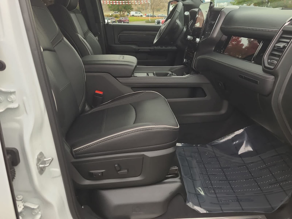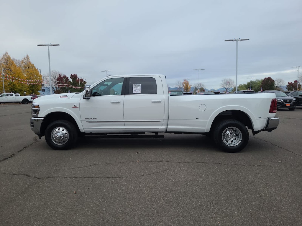 ENGINE: 6.7L I6 CUMMINS HO TURBO DIESEL Selective Catalytic Reduction (Urea), Dual 730 Amp Maintenance Free Batteries, Cummins Turbo Diesel Badge, Heavy Duty Engine Cooling, Current Generation Engine Controller, Diesel Exhaust Brake, Supplemental Heater, 3.42 Axle Ratio, Front Bumper Sight Shields, Capless Fuel Fill w/o Discriminator, LIMITED LEVEL 1 EQUIPMENT GROUP Active Lane Management System, CTR Stop Lamp w/Cargo View Camera, Surround View Camera System, LED Bed Lighting, Power Deployable Running Boards, Traffic Sign Recognition, Trailer Tire Pressure Monitoring System, Adaptive Steering System, MOPAR Spray In Bedliner, Drowsy Driver Detection, Trailer Reverse Guidance, Digital Rearview Mirror, DUAL REAR WHEELS Clearance Lamps, Tires: LT235/80R17E BSW All Season, 17 Steel Spare Wheel, Box & Rear Fender Clearance Lamps, Center Hub, 6000# Front Axle w/Hub Ext, Wheels: 17 x 6.0 Polished Aluminum, Nexen Brand Tires, GVWR: 14,000 lb, POWER SUNROOF, TRANSMISSION: 8-SPEED TORQUEFLITE HD AUTOMATIC. Ram Limited with Bright White Clearcoat exterior and Black interior features a Straight 6 Cylinder Engine with 430 HP at 2800 RPM*.