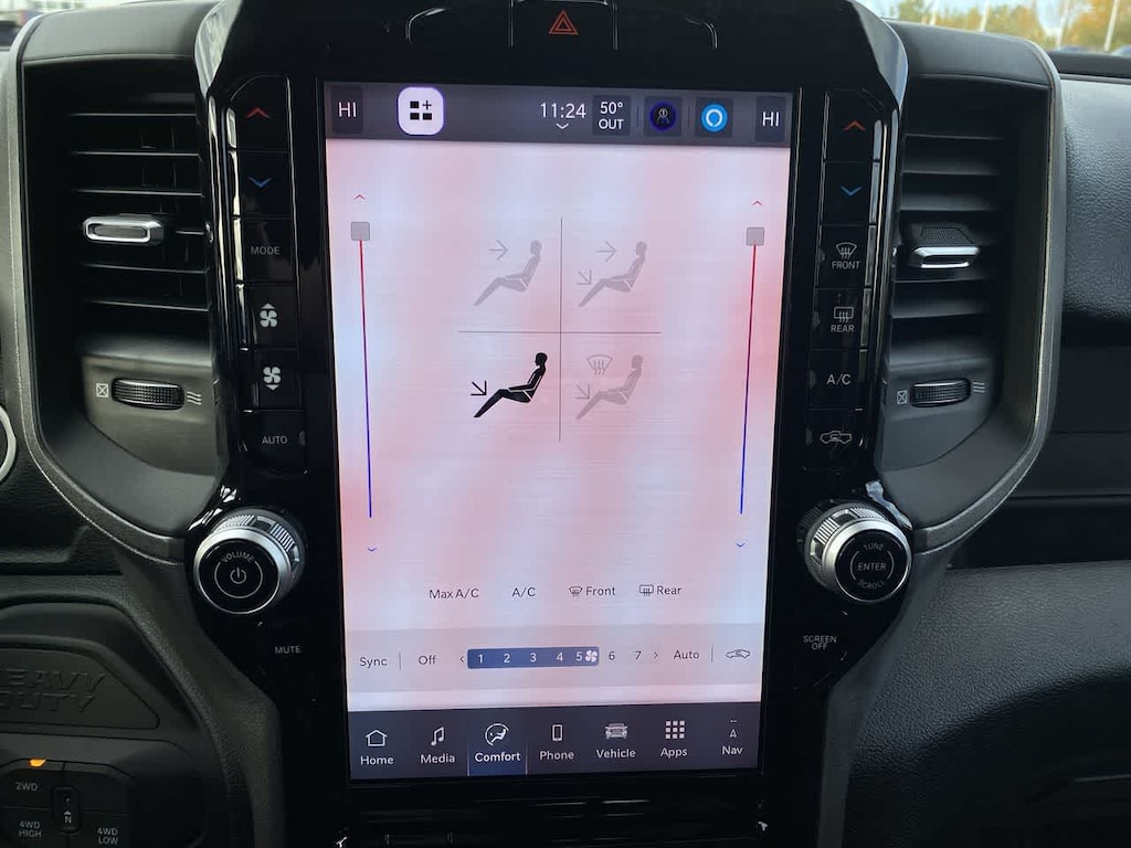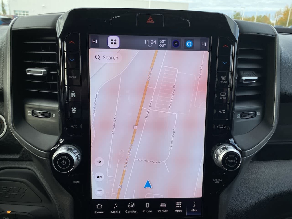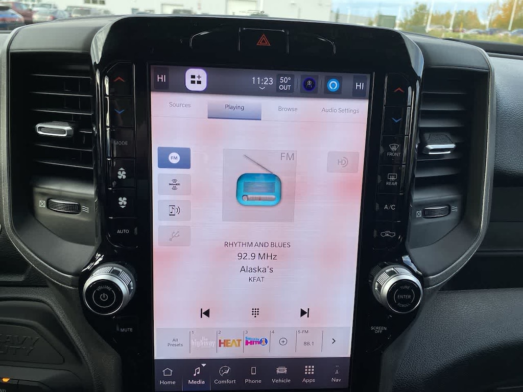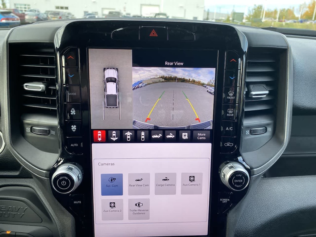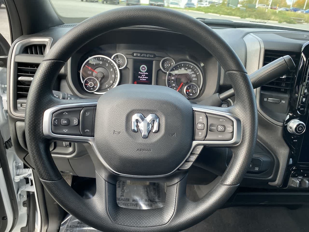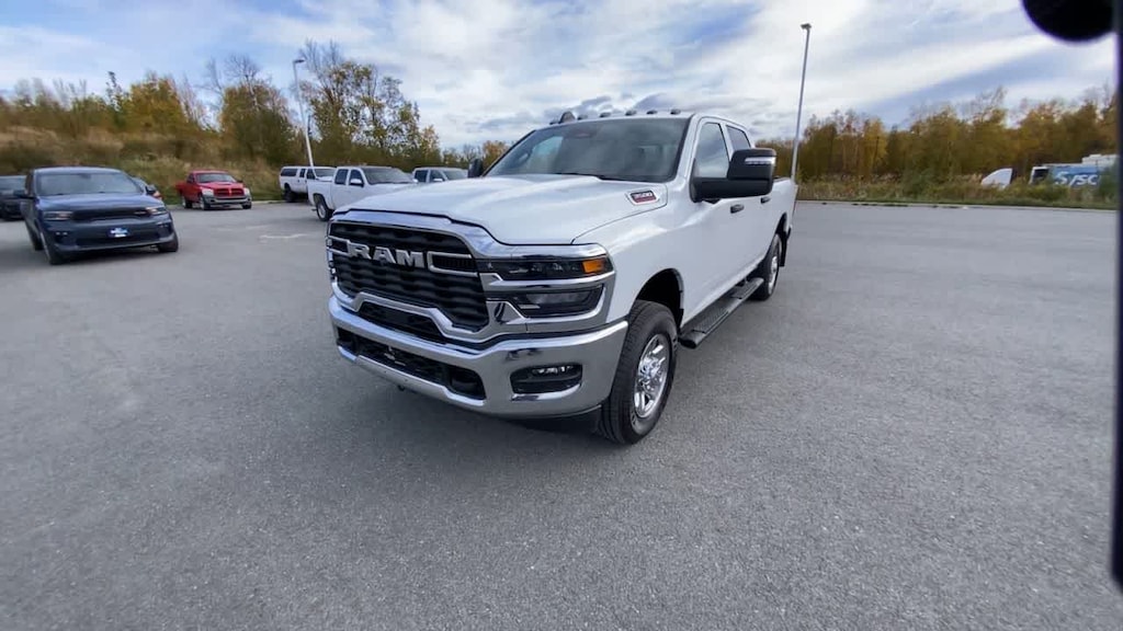 TRADESMAN LEVEL 2A EQUIPMENT GROUP Convenience Group, For Details Visit DriveUconnect.com, For More Info, Call 800-643-2112, Emergency Vehicle Alert System (EVAS), 12 Touchscreen Display, Mirror Running Lights, Exterior 115V AC Outlet, Alexa Built-In, Power-Adjustable Convex Aux Mirrors, Disassociated Touchscreen Display, Matte Black Mesh w/Chrome Grille, 115V Auxiliary Front Power Outlet, Center Hub, Rear View Auto Dim Mirror, Rear Power Sliding Window, Tinted Acoustic Windshield Glass, GPS Navigation, Bright Rear Bumper, Exterior Mirrors w/Heating Element, Chrome Grille Surround, MOPAR Black Tubular Side Steps, SiriusXM w/360L, Connected Travel & Traffic Services, Wheels: 18 x 8.0 Steel Chrome Clad, Carpet Floor Covering, Off-Road Information Pages, Trailer Tow Pages, 400W Inverter, TOWING TECHNOLOGY GROUP CTR Stop Lamp w/Cargo View Camera, Forward & Reverse Utility Lights, Surround View Camera System, Blind Spot & Cross Path Detection, LED Tail Lamps, Red Tail Lamp Bezels, Power Heated Fold Telescopic Mirrors, Exterior Mirrors w/Supplemental Signals, Exterior Mirrors Courtesy Lamps, Trailer Tire Pressure Monitoring System, Auto Power-Folding Mirrors, Exterior Mirrors w/Heating Element, Mirror Running Lights, Power Adjust Mirrors, Power Telescoping Mirrors, Trailer Reverse Guidance, Power-Adjustable Convex Aux Mirrors, BED CONVENIENCE GROUP MOPAR Spray In Bedliner, LED Bed Lighting, TRANSMISSION: 8-SPEED AUTO (8HP75-LCV) (STD), ENGINE: 6.4L V8 HEMI HD (STD), BLACK, CLOTH 40/20/40 BENCH SEAT. Ram Tradesman with Bright White Clearcoat exterior and Black interior features a 8 Cylinder Engine with 405 HP at 5600 RPM*.