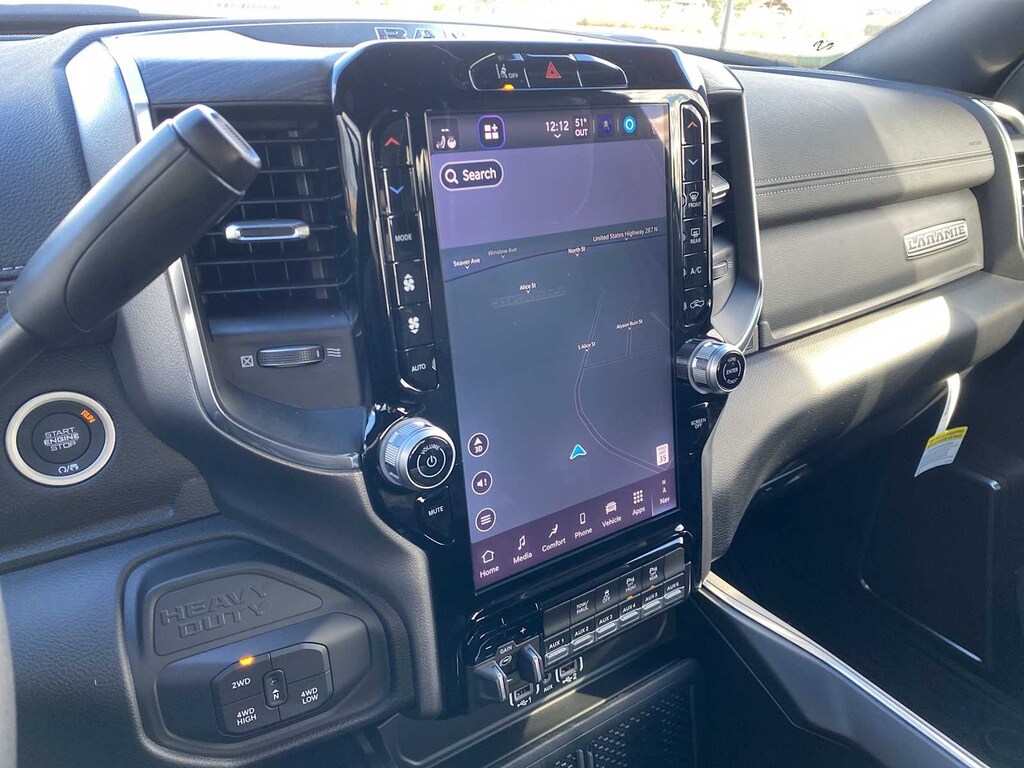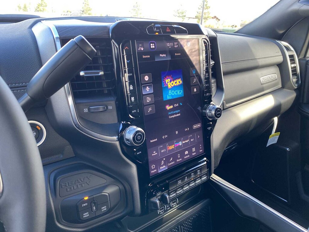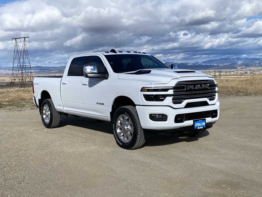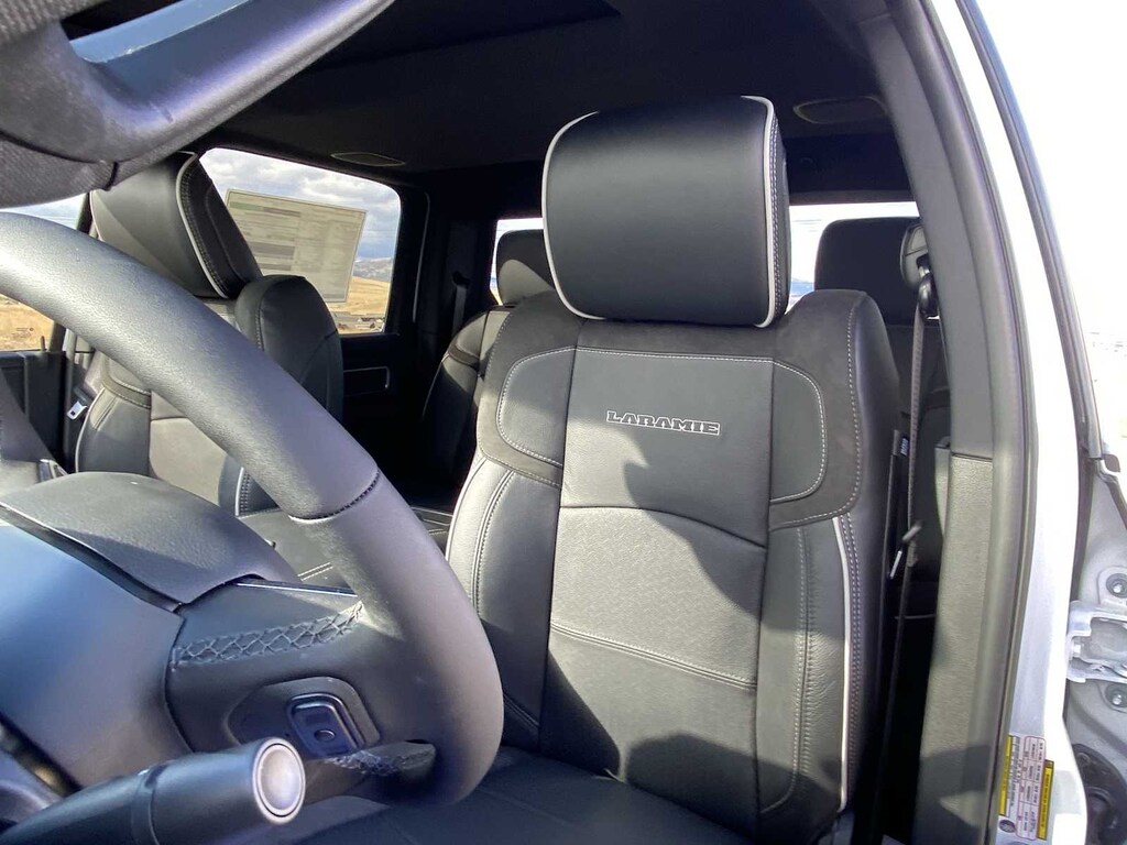 LARAMIE LEVEL 1 PLUS EQUIPMENT GROUP CTR Stop Lamp w/Cargo View Camera, Rain Sensitive Windshield Wipers, Power Adjustable Pedals w/Memory, LED Bed Lighting, Traffic Sign Recognition, Adaptive Steering System, Auto Dimming Exterior Mirrors, Drowsy Driver Detection, MOPAR Deployable Bed Step, Foam Bottle Insert (Door Trim Panel), Active Lane Management System, Power Heat Fold Memory Telescopic Mirrors, MOPAR Spray In Bedliner, Remote Tailgate Release, Auto High Beam Headlamp Control, Exterior Mirrors w/Memory, 2nd Row In Floor Storage Bins, Auto Dimming Exterior Passenger Mirror, Auto Adjust In Reverse Exterior Mirrors, POWER SUNROOF, MOPAR FRONT & REAR RUBBER FLOOR MATS, TRANSMISSION: 8-SPEED AUTO (8HP75-LCV) (STD), ENGINE: 6.4L V8 HEMI HD (STD), BLACK, LEATHER TRIMMED BUCKET SEATS Bucket Seats, Dual Wireless Charging Pad, Full Length Upgraded Floor Console. Ram Laramie with Bright White Clearcoat exterior and Black interior features a 8 Cylinder Engine with 405 HP at 5600 RPM*.