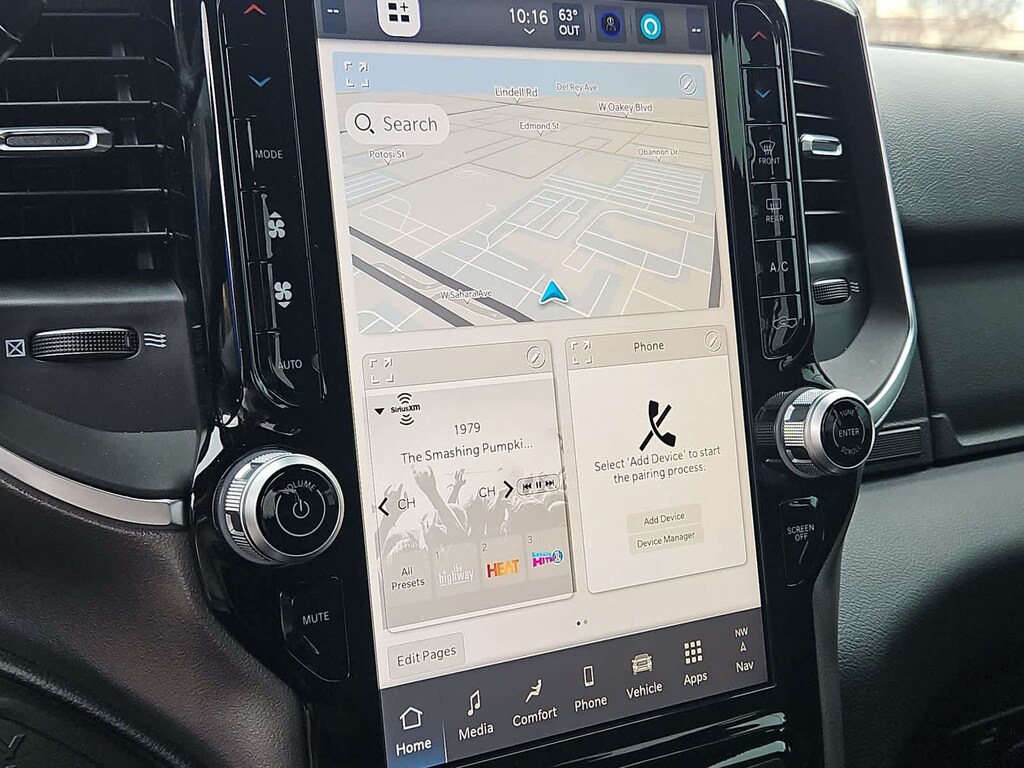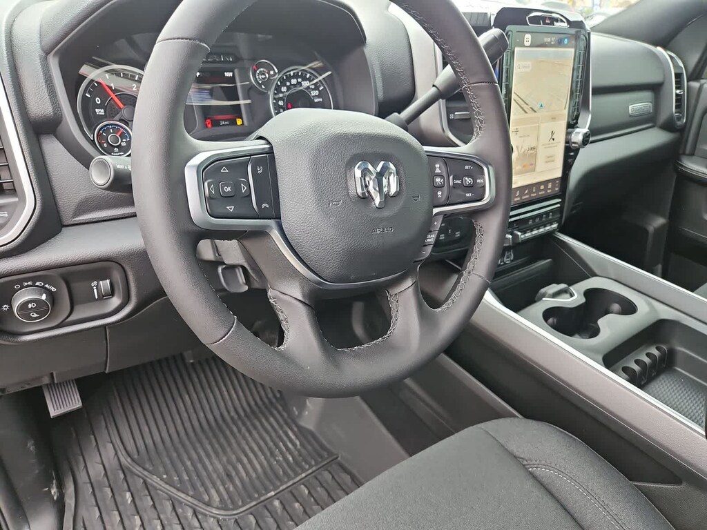 Our Big Horn cabin rewards you with satisfying features engineered for everyday use. Its easy to stay relaxed on the road with our Level 1 Plus Equipment Packages supportive cloth seats, a tilt-adjustable steering wheel, dual climate control, power accessories, pushbutton ignition, remote start, and keyless entry. Digital convenience comes into the picture with a Uconnect 5 12.0-inch touchscreen, a 3.5-inch driver display, WiFi compatibility, Apple CarPlay/Android Auto, Bluetooth, voice command, and an Alpine nine-speaker sound system.
