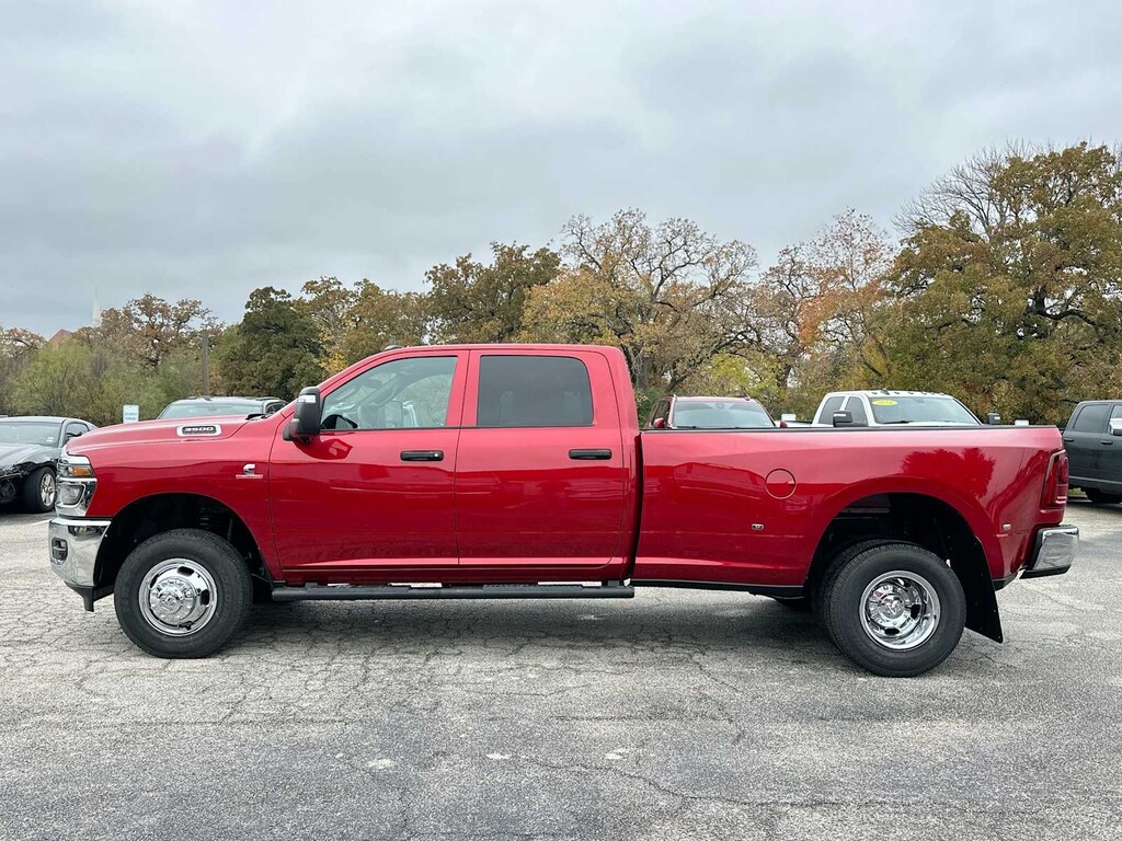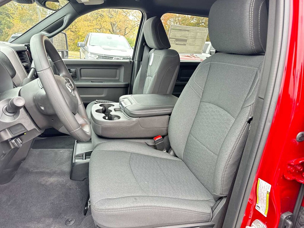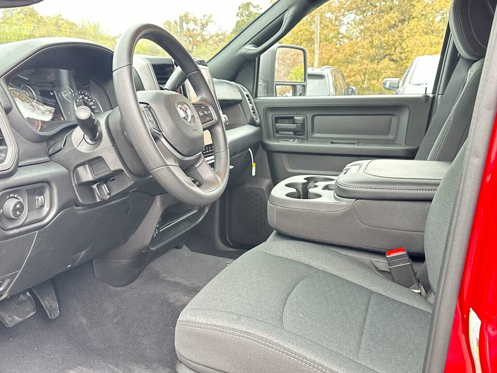 ENGINE: 6.7L I6 CUMMINS HO TURBO DIESEL Selective Catalytic Reduction (Urea), Dual 730 Amp Maintenance Free Batteries, Cummins Turbo Diesel Badge, Heavy Duty Engine Cooling, Current Generation Engine Controller, Diesel Exhaust Brake, Supplemental Heater, 3.42 Axle Ratio, Front Bumper Sight Shields, Capless Fuel Fill w/o Discriminator, TRADESMAN LEVEL 2A EQUIPMENT GROUP Convenience Group, For Details Visit DriveUconnect.com, For More Info, Call 800-643-2112, Emergency Vehicle Alert System (EVAS), 12 Touchscreen Display, Mirror Running Lights, Exterior 115V AC Outlet, Alexa Built-In, Power-Adjustable Convex Aux Mirrors, Disassociated Touchscreen Display, Bright Wheel Skins, Matte Black Mesh w/Chrome Grille, 115V Auxiliary Front Power Outlet, Center Hub, Rear View Auto Dim Mirror, Rear Power Sliding Window, Tinted Acoustic Windshield Glass, GPS Navigation, Bright Rear Bumper, Exterior Mirrors w/Heating Element, Chrome Grille Surround, MOPAR Black Tubular Side Steps, SiriusXM w/360L, Connected Travel & Traffic Services, Carpet Floor Covering, Off-Road Information Pages, Trailer Tow Pages, 400W Inverter, HD Radio, Power, TOWING TECHNOLOGY GROUP CTR Stop Lamp w/Cargo View Camera, Forward & Reverse Utility Lights, Surround View Camera System, Blind Spot & Cross Path Detection, LED Tail Lamps, Red Tail Lamp Bezels, Power Heated Fold Telescopic Mirrors, Exterior Mirrors w/Supplemental Signals, Exterior Mirrors Courtesy Lamps, Trailer Tire Pressure Monitoring System, Auto Power-Folding Mirrors, Exterior Mirrors w/Heating Element, Mirror Running Lights, Power Adjust Mirrors, Power Telescoping Mirrors, Trailer Reverse Guidance, Power-Adjustable Convex Aux Mirrors, DUAL REAR WHEELS Clearance Lamps, Tires: LT235/80R17E BSW All Season, 17 Steel Spare Wheel, Box & Rear Fender Clearance Lamps, 6000# Front Axle w/Hub Ext, Nexen Brand Tires, GVWR: 14,000 lb, Rear Wheelhouse Liners, TRANSMISSION: 8-SPEED TORQUEFLITE HD AUTOMATIC Ram Tradesman with Molten Red Pearlcoat exterior and Black interior features a Straight 6 Cylinder Engine with 430 HP at 2800 RPM*.
