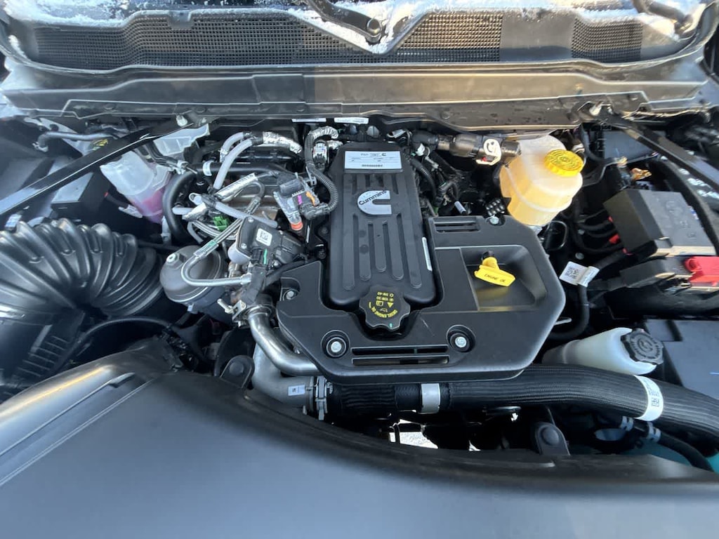 ENGINE: 6.7L I6 CUMMINS HO TURBO DIESEL Selective Catalytic Reduction (Urea), Dual 730 Amp Maintenance Free Batteries, GVWR: 11,800 lb, Cummins Turbo Diesel Badge, Heavy Duty Engine Cooling, Current Generation Engine Controller, Diesel Exhaust Brake, Supplemental Heater, 3.42 Axle Ratio, Front Bumper Sight Shields, Capless Fuel Fill w/o Discriminator, BIG HORN LEVEL 1 PLUS EQUIPMENT GROUP For Details Visit DriveUconnect.com, For More Info, Call 800-643-2112, Emergency Vehicle Alert System (EVAS), 12 Touchscreen Display, Glove Box Lamp, Auto Power-Folding Mirrors, Footwell Courtesy Lamp, MOPAR Deployable Bed Step, Alexa Built-In, Forward & Reverse Utility Lights, Locking Lower Glove Box, Remote Start System, 9 Alpine Speakers w/Subwoofer, Disassociated Touchscreen Display, Dual Glove Boxes, 2nd Row In Floor Storage Bins, Rear View Auto Dim Mirror, Rear Dome w/On/Off Switch Lamp, LED Bed Lighting, GPS Navigation, SiriusXM w/360L, Connected Travel & Traffic Services, Foam Bottle Insert (Door Trim Panel), Big Horn IP Badge, Off-Road Information Pages, Trailer Tow Pages, HD Radio, Radio: Uconnect 5 Nav w/12.0 Display, Power Heated Fold, TOWING TECHNOLOGY GROUP CTR Stop Lamp w/Cargo View Camera, Surround View Camera System, Trailer Tire Pressure Monitoring System, Blind Spot & Cross Path Detection, LED Tail Lamps, Red Tail Lamp Bezels, Trailer Reverse Guidance, NIGHT EDITION Firestone Brand Tires, Gloss Black Nostrils/Molded in Color Black Grille, Tires: LT285/60R20E OWL On/Off Road, Black Exterior Truck Badging, Wheels: 20 x 8.0 Black Painted Aluminum, Body Color Grille Surround, Black Interior Accents, Black Wheel Center Hub, Painted Front Bumper, Painted Rear Bumper, PAINTED FLAT WHEEL-TO-WHEEL SIDE STEPS, HEATED SEATS & WHEEL GROUP Heated Steering Wheel, Heated Front Seats, BLACK, PREMIUM CLOTH BUCKET SEATS Bucket Seats, Rear 60/40 Folding Seat, Power Adjust 8-Way Driver Seat, Folding Flat Load Floor Storage, Front Seat Back Map Pockets, Power 2-Way Driver Lumbar Adjust, Full Length Upgraded Floor Console, MOPAR FRONT & REAR RUBBER FLOOR MATS, TRANSMISSION: 8-SPEED TORQUEFLITE HD AUTOMATIC 12.0 Single Rear Wheel Axle. Ram Big Horn with Diamond Black Crystal Pearlcoat exterior and Black interior features a Straight 6 Cylinder Engine with 430 HP at 2800 RPM*.