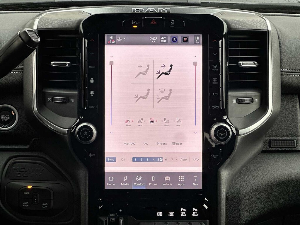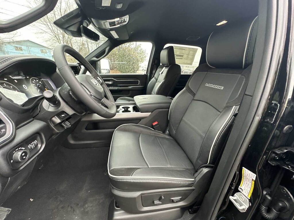 TOWING TECHNOLOGY GROUP Center Stop Lamp w/Cargo View Camera, Surround View Camera System, Trailer Tire Pressure Monitoring System, Trailer Reverse Guidance, LARAMIE LEVEL 1 PLUS EQUIPMENT GROUP Center Stop Lamp w/Cargo View Camera, Rain Sensitive Windshield Wipers, Power Adjustable Pedals w/Memory, LED Bed Lighting, Traffic Sign Recognition, Adaptive Steering System, Auto Dim Exterior Mirror, Drowsy Driver Detection, MOPAR Deployable Bed Step, Foam Bottle Insert (Door Trim Panel), Active Lane Management System, Power Heated Folding Telescopic Mirrors w/Memory, MOPAR Spray In Bedliner, Remote Tailgate Release, Auto High Beam Headlamp Control, Exterior Mirrors w/Memory, Auto Dim Exterior Passenger Mirror, Auto Adjust In Reverse Exterior Mirrors, TRANSMISSION: 8-SPEED TORQUEFLITE HD AUTOMATIC (STD), ENGINE: 6.7L I6 CUMMINS HO TURBO DIESEL (STD), BLACK, LEATHER TRIMMED BUCKET SEATS Bucket Seats, Dual Wireless Charging Pad, Ventilated Front Seats, Radio/Driver Seat/Mirrors/Pedals Memory, Full Length Upgraded Floor Console. Ram Laramie with Diamond Black Crystal Pearlcoat exterior and Black interior features a Straight 6 Cylinder Engine with 430 HP at 2800 RPM*. Approx. Original Base Sticker Price: $89,300*.