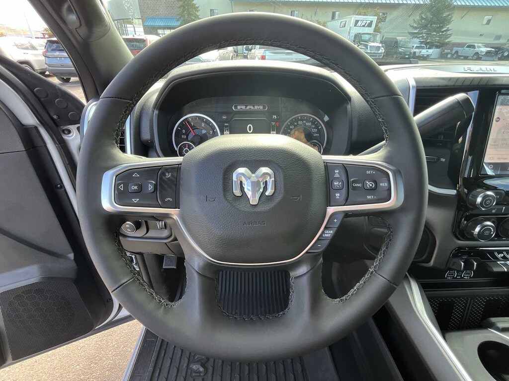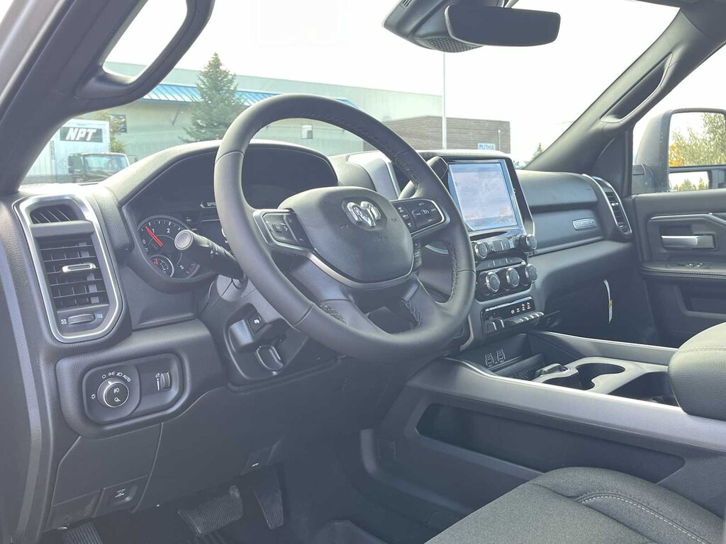 ENGINE: 6.7L I6 CUMMINS HO TURBO DIESEL Selective Catalytic Reduction (Urea), Dual 730 Amp Maintenance Free Batteries, Cummins Turbo Diesel Badge, Heavy Duty Engine Cooling, Current Generation Engine Controller, Diesel Exhaust Brake, Supplemental Heater, 3.42 Axle Ratio, Front Bumper Sight Shields, Capless Fuel Fill w/o Discriminator, BIG HORN LEVEL 2 EQUIPMENT GROUP Blind Spot & Cross Path Detection, LED Tail Lamps, Red Tail Lamp Bezels, Rear View Auto Dim Mirror, Power Adjustable Pedals, Rear Power Sliding Window, Rear Dome w/On/Off Switch Lamp, Glove Box Lamp, Auto Power-Folding Mirrors, Footwell Courtesy Lamp, Heated Front Seats, Heated Steering Wheel, Foam Bottle Insert (Door Trim Panel), Exterior 115V AC Outlet, Dampened Tailgate, Big Horn IP Badge, Forward & Reverse Utility Lights, Locking Lower Glove Box, Remote Start System, 400W Inverter, 9 Alpine Speakers w/Subwoofer, Power Heated Fold Telescopic Mirrors, Dual Wireless Charging Pad, Steering Wheel Mounted Audio Controls, Dual Glove Boxes, 115V Auxiliary Front Power Outlet, Cluster 7.0 TFT Color Display, Universal Garage Door Opener, Luxury Steering Wheel, MOPAR FRONT & REAR RUBBER FLOOR MATS, TRANSMISSION: 8-SPEED TORQUEFLITE HD AUTOMATIC, BLACK, PREMIUM CLOTH BUCKET SEATS Bucket Seats, Rear 60/40 Folding Seat, Power Adjust 8-Way Driver Seat, Folding Flat Load Floor Storage, Front Seat Back Map Pockets, Power 2-Way Driver Lumbar Adjust, Full Length Upgraded Floor Console. Ram Big Horn with Silver Zynith exterior and Black interior features a Straight 6 Cylinder Engine with 430 HP at 2800 RPM*. Approx. Original Base Sticker Price: $77,800*.