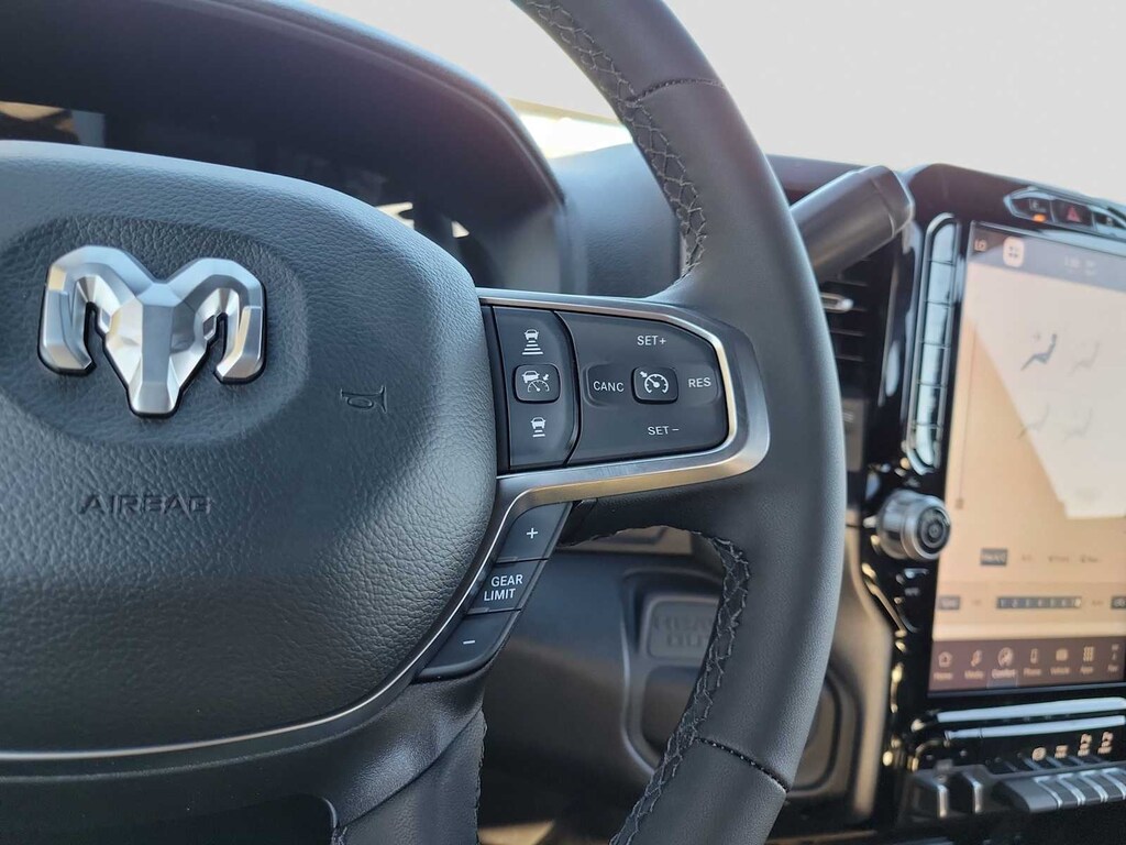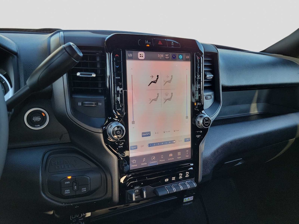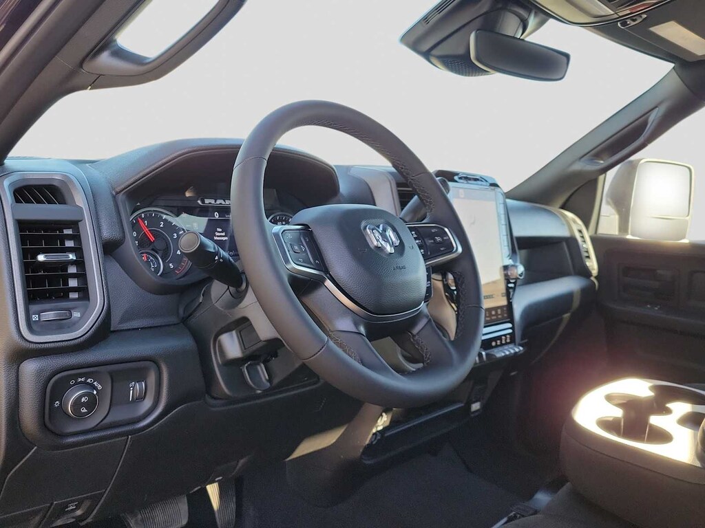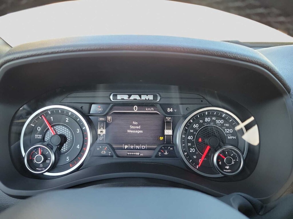 ENGINE: 6.7L I6 CUMMINS HO TURBO DIESEL Selective Catalytic Reduction (Urea), Dual 730 Amp Maintenance Free Batteries, Cummins Turbo Diesel Badge, Heavy Duty Engine Cooling, Current Generation Engine Controller, Diesel Exhaust Brake, Supplemental Heater, 3.42 Axle Ratio, Front Bumper Sight Shields, Capless Fuel Fill w/o Discriminator, TRADESMAN LEVEL 2 EQUIPMENT GROUP Convenience Group, For Details Visit DriveUconnect.com, For More Info, Call 800-643-2112, Emergency Vehicle Alert System (EVAS), 12 Touchscreen Display, Mirror Running Lights, Exterior 115V AC Outlet, Alexa Built-In, Power-Adjustable Convex Aux Mirrors, Disassociated Touchscreen Display, Matte Black Mesh w/Chrome Grille, 115V Auxiliary Front Power Outlet, Center Hub, Rear View Auto Dim Mirror, Rear Power Sliding Window, Tinted Acoustic Windshield Glass, GPS Navigation, Bright Rear Bumper, Exterior Mirrors w/Heating Element, Chrome Grille Surround, MOPAR Black Tubular Side Steps, SiriusXM w/360L, Connected Travel & Traffic Services, Carpet Floor Covering, Off-Road Information Pages, Trailer Tow Pages, 400W Inverter, HD Radio, Power Heat Fold Telescopic, SAFETY GROUP Active Lane Management System, Auto High Beam Headlamp Control, Blind Spot & Cross Path Detection, LED Tail Lamps, Red Tail Lamp Bezels, Cluster 7.0 TFT Color Display, Rain Sensitive Windshield Wipers, Rear View Auto Dim Mirror, Drowsy Driver Detection, Steering Wheel Mounted Audio Controls, Luxury Steering Wheel, Adaptive Steering System, DUAL REAR WHEELS Clearance Lamps, Tires: LT235/80R17E BSW All Season, 17 Steel Spare Wheel, Box & Rear Fender Clearance Lamps, 6000# Front Axle w/Hub Ext, Nexen Brand Tires, GVWR: 14,000 lb, Rear Wheelhouse Liners, TRANSMISSION: 8-SPEED TORQUEFLITE HD AUTOMATIC, BLACK, CLOTH 40/20/40 BENCH SEAT. Ram Tradesman with Diamond Black Crystal Pearlcoat exterior and Black interior features a Straight 6 Cylinder Engine with 430 HP at 2800 RPM*.