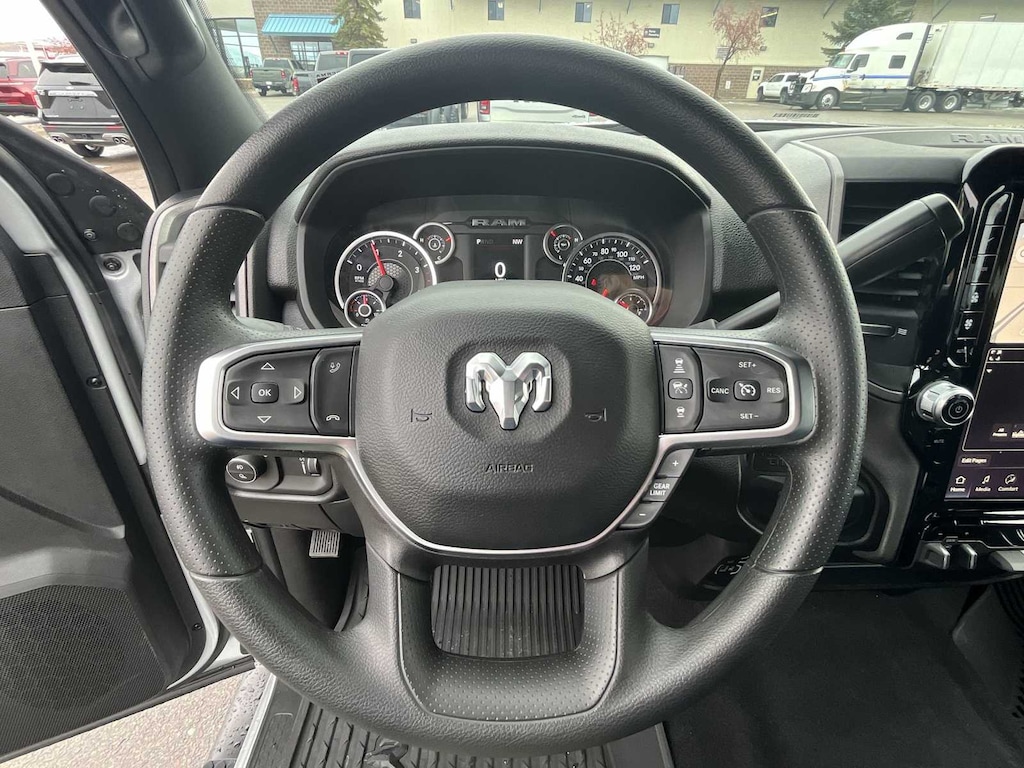 ENGINE: 6.7L I6 CUMMINS HO TURBO DIESEL Selective Catalytic Reduction (Urea), Dual 730 Amp Maintenance Free Batteries, GVWR: 11,800 lb, Cummins Turbo Diesel Badge, Heavy Duty Engine Cooling, Current Generation Engine Controller, Diesel Exhaust Brake, Supplemental Heater, 3.42 Axle Ratio, Front Bumper Sight Shields, Capless Fuel Fill w/o Discriminator, TRADESMAN LEVEL 1 EQUIPMENT GROUP Convenience Group, Rear View Auto Dim Mirror, For Details Visit DriveUconnect.com, For More Info, Call 800-643-2112, Rear Power Sliding Window, Emergency Vehicle Alert System (EVAS), 12 Touchscreen Display, Tinted Acoustic Windshield Glass, GPS Navigation, Exterior Mirrors w/Heating Element, MOPAR Black Tubular Side Steps, SiriusXM w/360L, Connected Travel & Traffic Services, Mirror Running Lights, Exterior 115V AC Outlet, Alexa Built-In, Carpet Floor Covering, Power-Adjustable Convex Aux Mirrors, Off-Road Information Pages, Trailer Tow Pages, 400W Inverter, Disassociated Touchscreen Display, HD Radio, Power Heat Fold Telescopic Mirrors, Radio: Uconnect 5 Nav w/12.0 Display, Exterior Mirrors w/Supplemental Signals, Exterior Mirrors Courtesy Lamps, Air, TRANSMISSION: 8-SPEED TORQUEFLITE HD AUTOMATIC 12.0 Single Rear Wheel Axle, BLACK, CLOTH 40/20/40 BENCH SEAT. Ram Tradesman with Silver Zynith exterior and Black interior features a Straight 6 Cylinder Engine with 430 HP at 2800 RPM*. Approx. Original Base Sticker Price: $73,800*.
