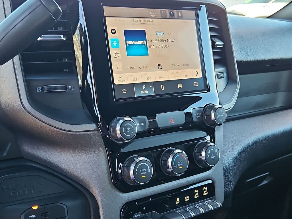 Our Tradesman cabin has you covered during long days with supportive work-grade seats, a tilt-adjustable steering wheel, air conditioning, cruise control, keyless access, push-button ignition, power accessories, door-sill scuff pads, and ample in-cab storage. You can also enjoy a full complement of infotainment features, including an 8.4-inch touchscreen, a 3.5-inch driver display, Apple CarPlay, Android Auto, Wi-Fi compatibility, Bluetooth, and a six-speaker audio system.