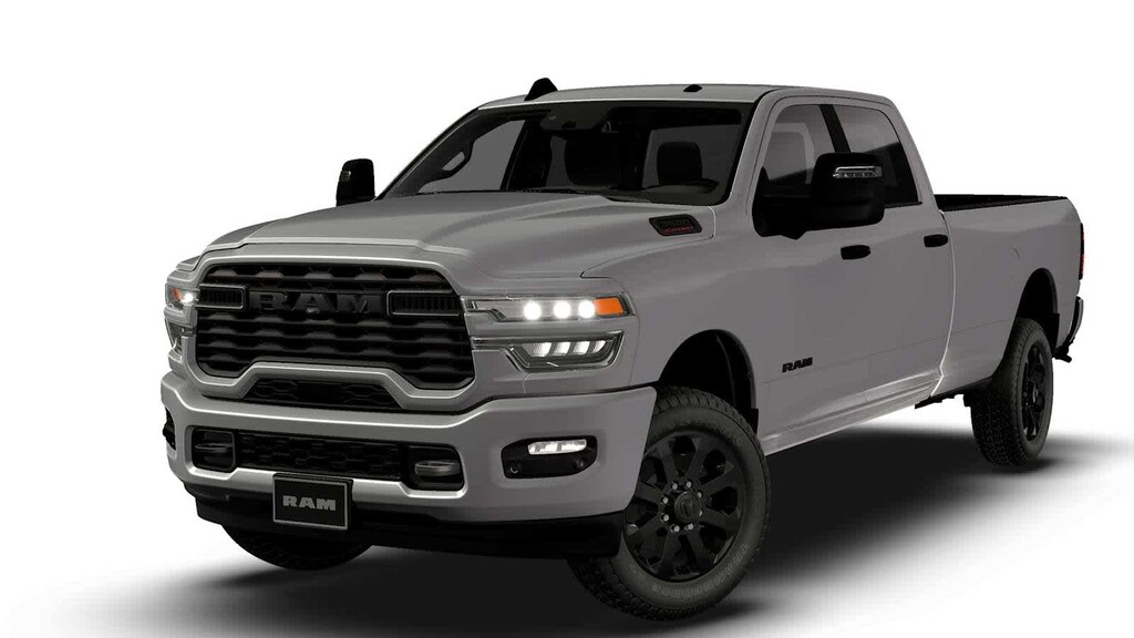 Our Diesel-powered 2026 RAM 3500 Big Horn Crew Cab 4X4 Night Edition in Silver Zynith combines capability and everyday comfort to help drive your business forward. Powered by a TurboCharged 6.7 Liter High Output Cummins Diesel 6 Cylinder serving up 370hp and 850lb-ft of torque, an 8 Speed Automatic transmission so that you can pull with bold confidence. This Four Wheel Drive truck also comes with an anti-spin rear differential to get a better grip on hard work, and it stands strong with a rugged RAM design. Exterior details include LED lighting, fog lamps, heated power trailer mirrors, painted bumpers, 20-inch black aluminum wheels, and a Class V receiver hitch with an LED hitch lamp. The result is one good-looking truck!