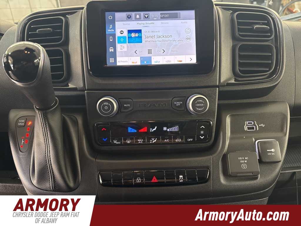 ProMaster 3500 High Roof is nicely equipped with Convenience Group (Exterior Mirrors with Heating Element, Exterior Mirrors with Supplemental Signals, Front Fog Lamps, Power Adjust Mirrors, Power Folding/Heated Mirrors, Power-Adjustable Convex Aux Mirrors, Power-Folding Mirrors, and Rear Cargo LED Lamp), Power Group (100 Amp Battery, 115V Auxiliary Power Outlet, and 12V Rear Auxiliary Power Outlet), Quick Order Package 22B Tradesman (4-Way Manual Adjust Front Passenger Seat and Passenger Bucket Seat), 220 Amp Alternator, 4 Speakers, 4-Wheel Disc Brakes, 4.08 Axle Ratio, 4G LTE Wi-Fi Hotspot, ABS brakes, Adaptive Cruise Control with Stop and Go, Air Conditioning, AM/FM radio: SiriusXM, Apple CarPlay, Apple CarPlay/Android Auto, Black/Gray Seats, Bodyside moldings, Brake assist, Class IV Receiver Hitch, Cloth Bucket Seats, Connectivity - US/Canada, Driver door bin, Driver Seat Armrest, Drivers Seat Mounted Armrest, Electronic Stability Control, For Details, Visit DriveUconnect.com, For More Info, Call 800-643-2112, Front anti-roll bar, Front Bucket Seats, Front License Plate Bracket, Front reading lights, Front wheel independent suspension, Global Telematics Box Module, Google Android Auto, GPS Antenna Input, Heavy Duty Suspension, Illuminated entry, Integrated Center Stack Radio, Low tire pressure warning, Manufacturers Statement of Origin, MOPAR Spray-on Floor Liner, Outside temperature display, Overhead airbag, Overhead console, ParkSense Rear Park Assist System, ParkView Rear Back-Up Camera, Passenger door bin, Power steering, Power windows, Radio: Uconnect 5 with 7 Display, Rear anti-roll bar, Remote keyless entry, SiriusXM Radio Service, Steering wheel mounted audio controls, Tachometer, Telescoping steering wheel, Traction control, Trip computer, Turn signal indicator mirrors, Variably intermittent wipers, Wheel Center Cap, and Wheels: 16 x 6.0 SteeL.