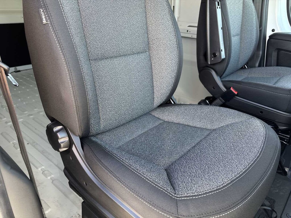 Taking charge of our Tradesman cabin can help make your days more productive. Its comfortable and convenient, highlighted by supportive cloth seats, a multifunction steering wheel, air conditioning, keyless access/ignition, power accessories, and a 3.5-inch driver display. The full-function infotainment system features a 7-inch touchscreen, WiFi compatibility, Apple CarPlay, Android Auto, Bluetooth, voice command, and a four-speaker audio system. Additionally, youll find ample space in the back to help meet your needs.