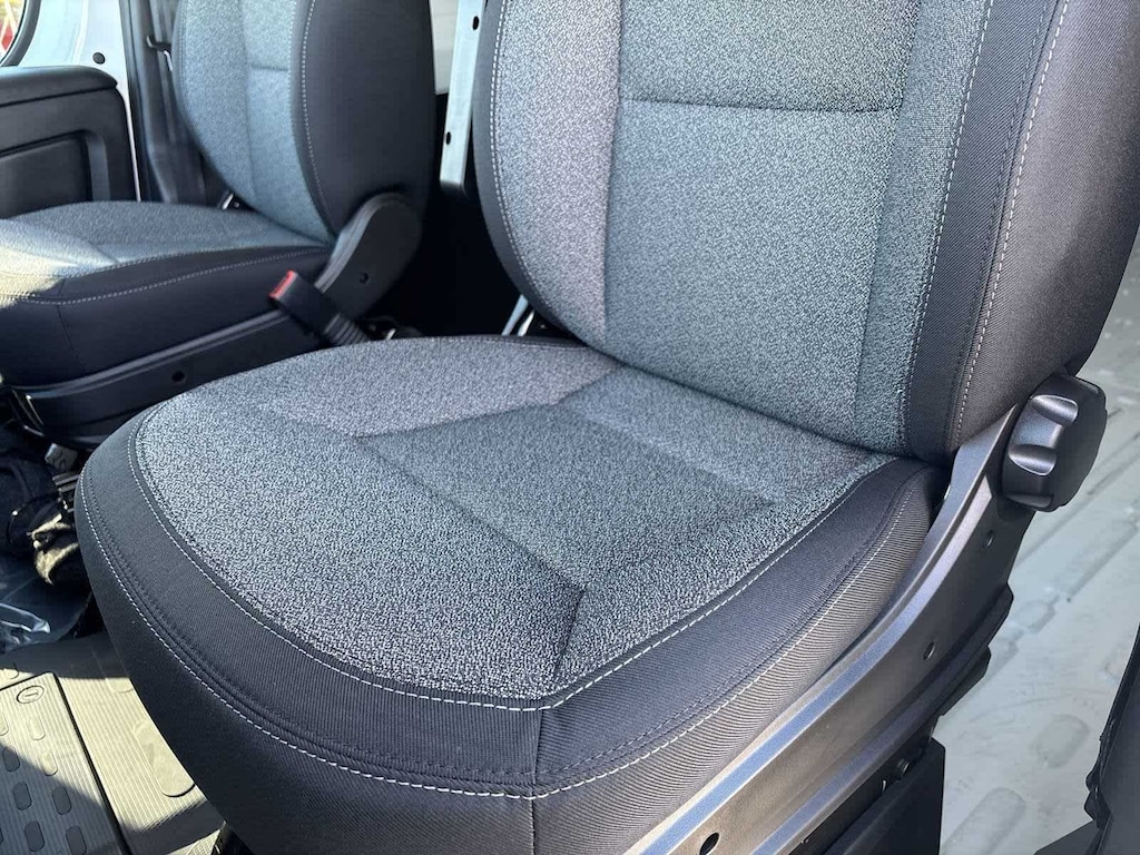 Taking charge of our Tradesman cabin can help make your days more productive. Its comfortable and convenient, highlighted by supportive cloth seats, a multifunction steering wheel, air conditioning, keyless access/ignition, power accessories, and a 3.5-inch driver display. The full-function infotainment system features a 7-inch touchscreen, WiFi compatibility, Apple CarPlay, Android Auto, Bluetooth, voice command, and a four-speaker audio system. Additionally, youll find ample space in the back to help meet your needs.
