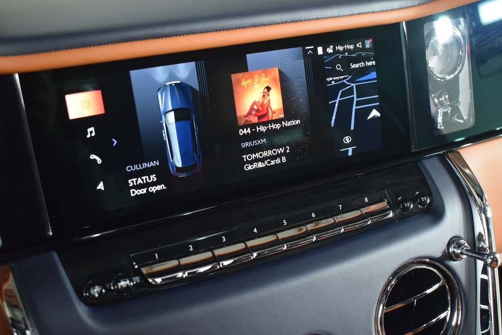 2026 Rolls-Royce Cullinan in Midnight Sapphire exterior with Navy Blue and Armagnac interior. The Rolls-Royce Cullinan features a 6.75L twin-turbo V12 engine with 600 hp.