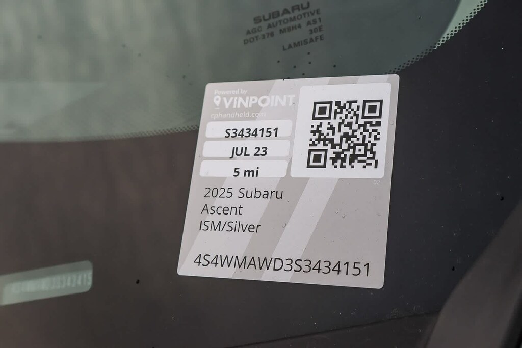 Ice Silver Metallic 2025 Subaru Ascent Onyx Edition Touring AWD Lineartronic CVT 2.4L 4-Cylinder DOHC 16V DETAILED INTERIOR AND EXTERIOR FOR DELIVERY, Multi Point Safety and Mechanical Inspection Performed by Certified Technician.