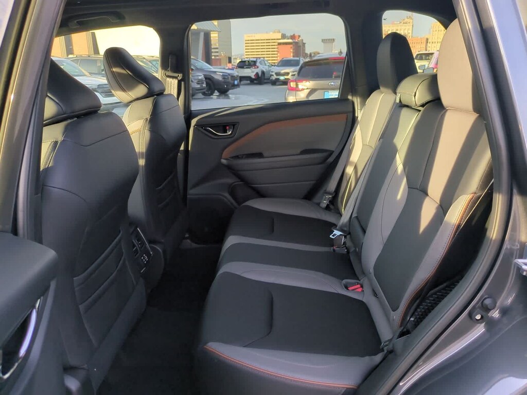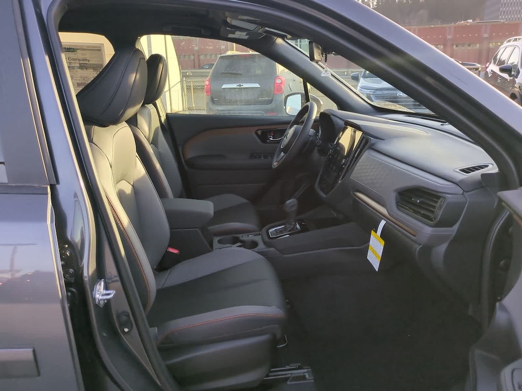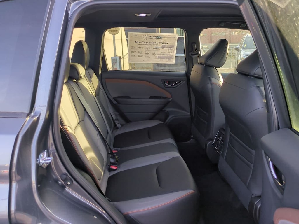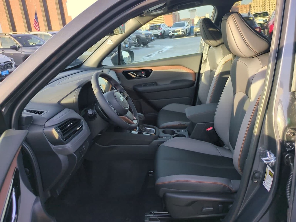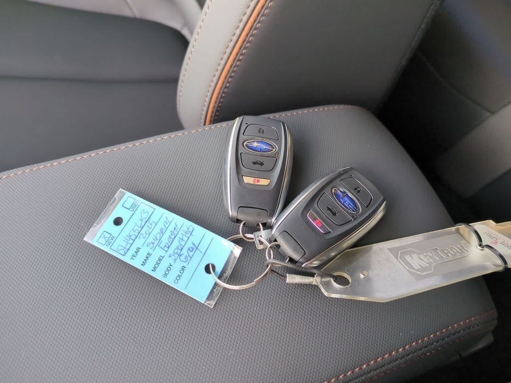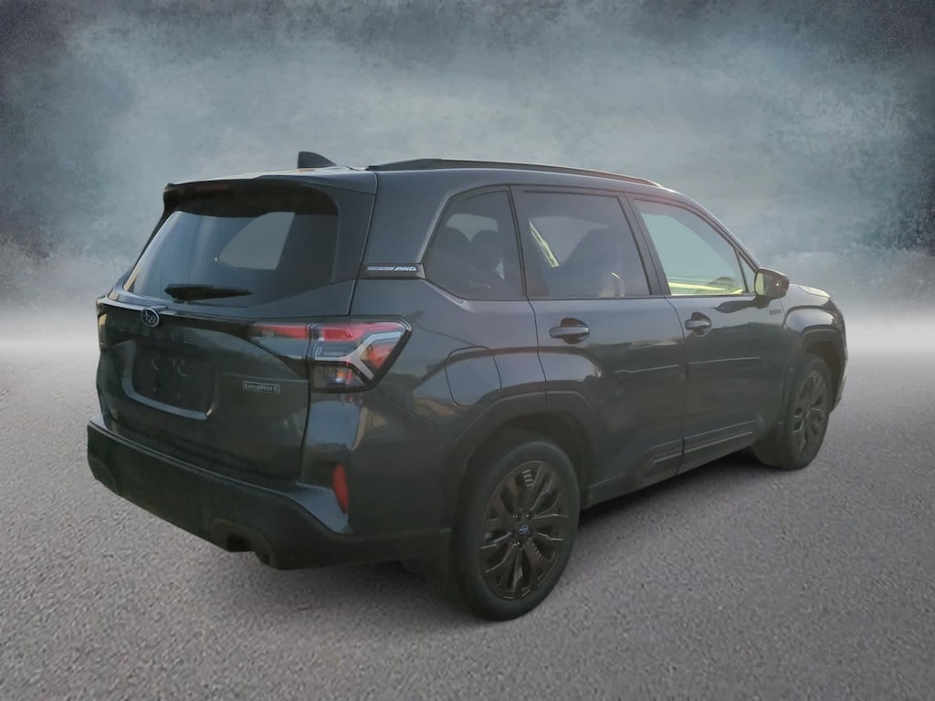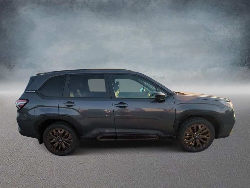 Magnetite Gray Metallic 2025 Subaru Forester Hybrid Sport AWD Lineartronic CVT 2.5L 4-Cylinder DOHC 16V 2.5L 4-Cylinder DOHC 16V, 11 Speakers, 4-Wheel Disc Brakes, ABS brakes, Air Conditioning, Alloy wheels, AM/FM radio: SiriusXM with 360L, Anti-whiplash front head restraints, Auto High-beam Headlights, Automatic temperature control, Brake assist, Bumpers: body-color, Compass, Driver door bin, Driver vanity mirror, Dual front impact airbags, Dual front side impact airbags, Electronic Stability Control, Emergency communication system: MySubaru Safety (3-year free trial), Exterior Parking Camera Rear, Four wheel independent suspension, Front anti-roll bar, Front Bucket Seats, Front Center Armrest, Front dual zone A/C, Front fog lights, Front reading lights, Fully automatic headlights, harman/kardonî Speakers, Heated door mirrors, Heated Front Bucket Seats, Heated front seats, Illuminated entry, Knee airbag, Low tire pressure warning, Navigation system: TomTom Navigation w/what3words, Occupant sensing airbag, Outside temperature display, Overhead airbag, Overhead console, Panic alarm, Passenger door bin, Passenger vanity mirror, Power door mirrors, Power driver seat, Power Liftgate, Power moonroof: Panoramic, Power steering, Power windows, Radio data system, Radio: Subaru 11.6 Multimedia Navigation System, Rear anti-roll bar, Rear seat center armrest, Rear window defroster, Rear window wiper, Remote keyless entry, Security system, Speed control, Speed-sensing steering, Split folding rear seat, Spoiler, Sport StarTex Upholstery, Standard Model, Steering wheel mounted audio controls, Tachometer, Telescoping steering wheel, Tilt steering wheel, Traction control, Trip computer, Turn signal indicator mirrors, Variably intermittent wipers, Wheels: 19 x 7.5 J Bronze Finish Aluminum-Alloy, 2.5L 4-Cylinder DOHC 16V.