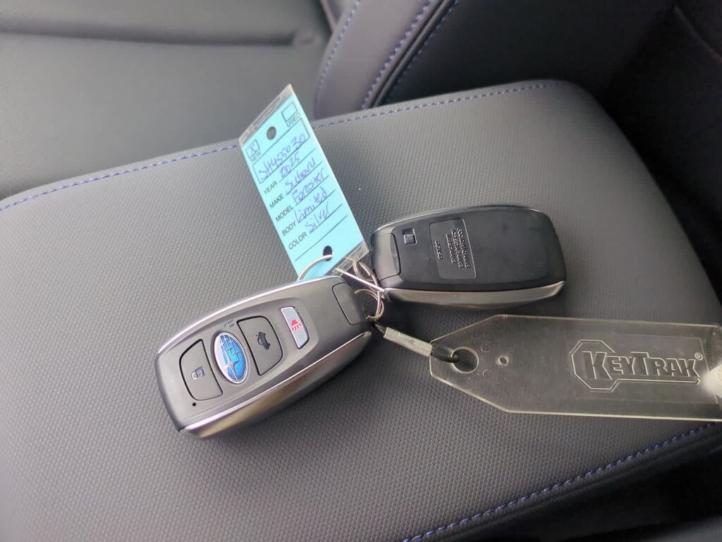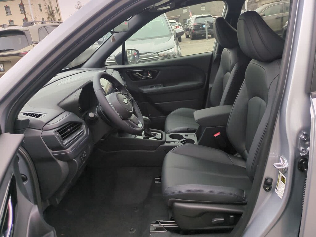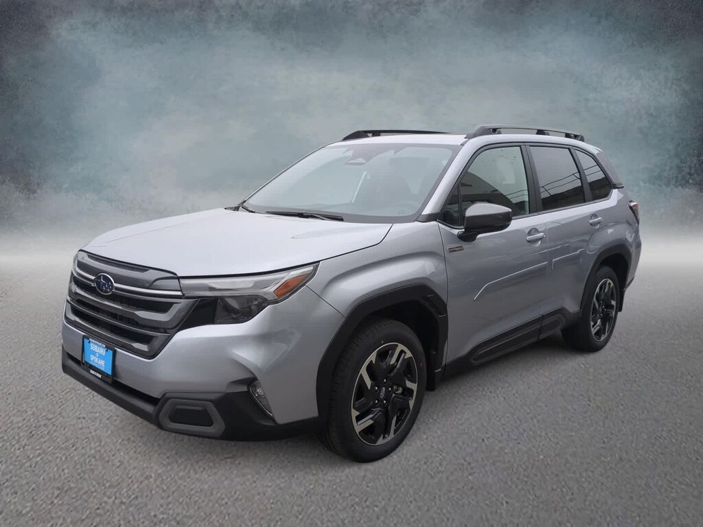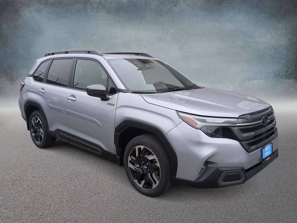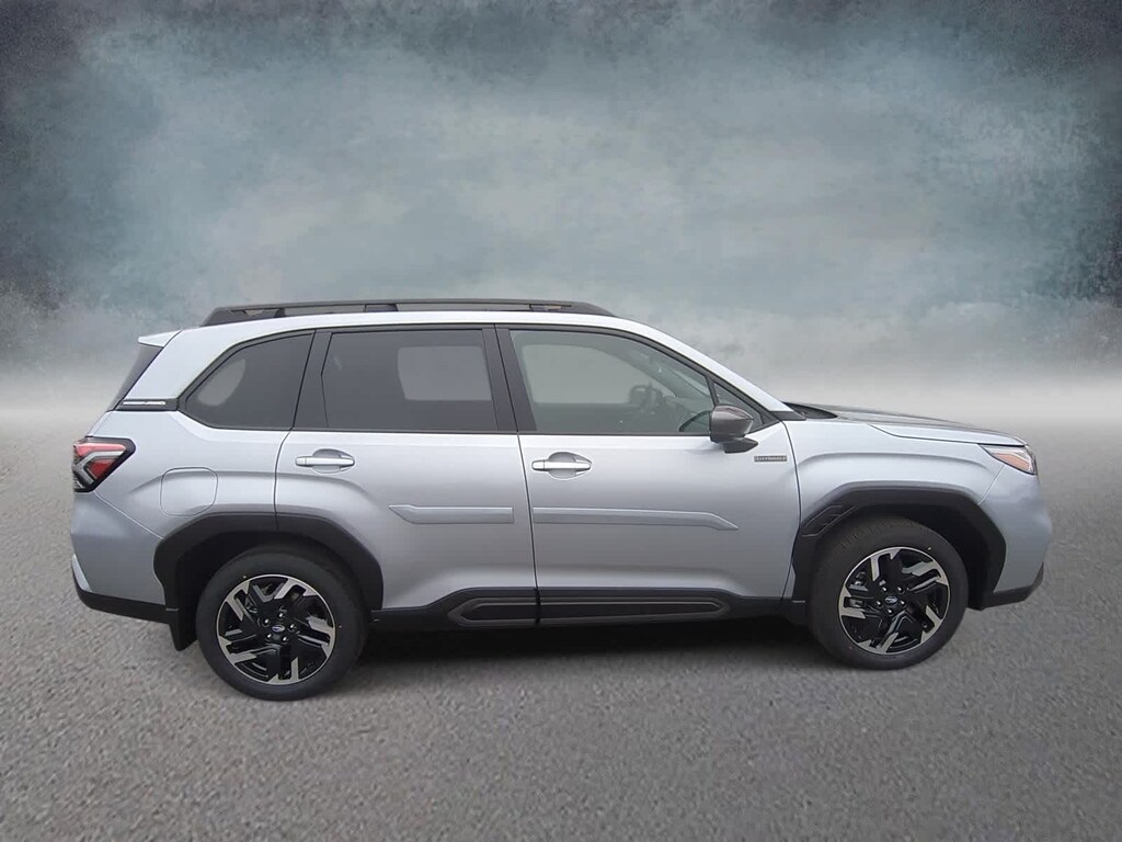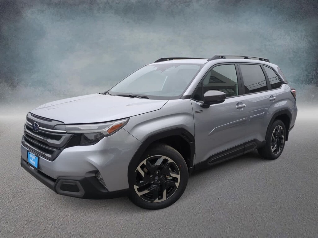 Ice Silver Metallic 2025 Subaru Forester Hybrid Limited AWD Lineartronic CVT 2.5L 4-Cylinder DOHC 16V 2.5L 4-Cylinder DOHC 16V, 11 Speakers, 4-Wheel Disc Brakes, ABS brakes, Air Conditioning, Alloy wheels, AM/FM radio: SiriusXM with 360L, Anti-whiplash front head restraints, Auto High-beam Headlights, Automatic temperature control, Brake assist, Bumpers: body-color, Compass, Driver door bin, Driver vanity mirror, Dual front impact airbags, Dual front side impact airbags, Electronic Stability Control, Emergency communication system: MySubaru Safety (3-year free trial), Exterior Parking Camera Rear, Four wheel independent suspension, Front anti-roll bar, Front Bucket Seats, Front Center Armrest, Front dual zone A/C, Front fog lights, Front reading lights, Fully automatic headlights, harman/kardonî Speakers, Heated door mirrors, Heated Front Bucket Seats, Heated front seats, Illuminated entry, Knee airbag, Low tire pressure warning, Navigation system: TomTom Navigation w/what3words, Occupant sensing airbag, Outside temperature display, Overhead airbag, Overhead console, Panic alarm, Passenger door bin, Passenger vanity mirror, Power door mirrors, Power driver seat, Power Liftgate, Power moonroof: Panoramic, Power passenger seat, Power steering, Power windows, Radio data system, Radio: Subaru 11.6 Multimedia Navigation System, Rear anti-roll bar, Rear seat center armrest, Rear window defroster, Rear window wiper, Remote keyless entry, Security system, Speed control, Speed-sensing steering, Split folding rear seat, Spoiler, Standard Model, StarTex Upholstery, Steering wheel mounted audio controls, Tachometer, Telescoping steering wheel, Tilt steering wheel, Traction control, Trip computer, Turn signal indicator mirrors, Variably intermittent wipers, Wheels: 18 x 7.0 J Dark Metallic Aluminum-Alloy, 2.5L 4-Cylinder DOHC 16V.