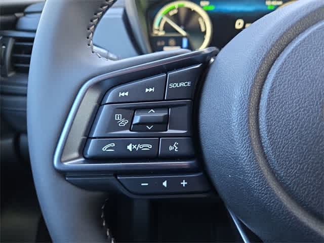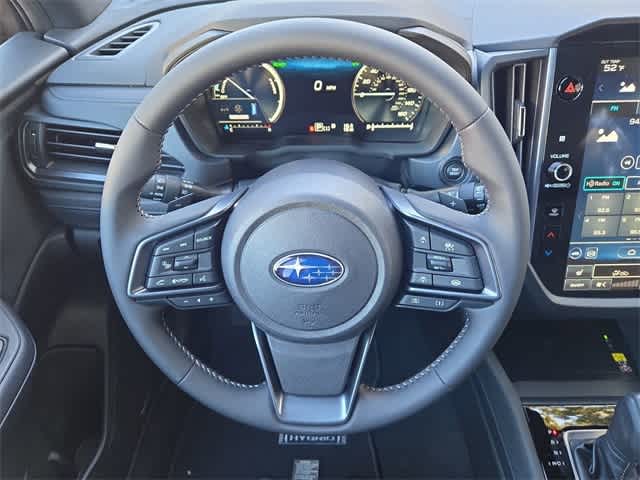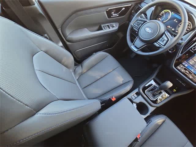 This 2025 Subaru Forester Hybrid Limited in Whc, features Standard Model, 11 Speakers, 4-Wheel Disc Brakes, ABS brakes, Air Conditioning, Alloy wheels, AM/FM radio: SiriusXM with 360L, Anti-whiplash front head restraints, Auto High-beam Headlights, Auto-Dimming Exterior Mirror with Approach Light, Auto-Dimming Mirror with Compass and HomeLink, Automatic temperature control, Brake assist, Bumpers: body-color, Compass, Driver door bin, Driver vanity mirror, Dual front impact airbags, Dual front side impact airbags, Electronic Stability Control, Emergency communication system: MySubaru Safety (3-year free trial), Exterior Parking Camera Rear, Four wheel independent suspension, Front anti-roll bar, Front Bucket Seats, Front Center Armrest, Front dual zone A/C, Front fog lights, Front reading lights, Fully automatic headlights, harman/kardonî Speakers, Heated door mirrors, Heated Front Bucket Seats, Heated front seats, Illuminated entry, Knee airbag, Low tire pressure warning, Navigation system: TomTom Navigation w/what3words, Occupant sensing airbag, Outside temperature display, Overhead airbag, Overhead console, Panic alarm, Passenger door bin, Passenger vanity mirror, Power door mirrors, Power driver seat, Power Liftgate, Power moonroof: Panoramic, Power passenger seat, Power steering, Power windows, Radio data system, Radio: Subaru 11.6 Multimedia Navigation System, Rear anti-roll bar, Rear seat center armrest, Rear window defroster, Rear window wiper, Remote keyless entry, Security system, Speed control, Speed-sensing steering, Split folding rear seat, Spoiler, StarTex Upholstery, Steering wheel mounted audio controls, Tachometer, Telescoping steering wheel, Tilt steering wheel, Traction control, Trip computer, Turn signal indicator mirrors, Variably intermittent wipers, and Wheels: 18 x 7.0 J Dark Metallic Aluminum-Alloy: Limited AWD