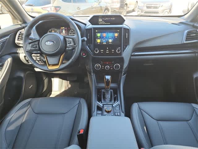 This 2025 Subaru Forester Wilderness in Magnetite Gray Metallic, features harman/kardon Audio & Power Rear Gate (Power Rear Gate and Radio: Subaru 8.0 Multimedia Navigation System), Wilderness Package (Auto-Dimming Exterior Mirror w/Approach Light, Auto-Dimming Mirror w/Compass & HomeLink, Cargo Sidewall Protector, Rear Bumper Cover, and Rear Seatback Protector - Wilderness), 4-Wheel Disc Brakes, 6 Speakers, ABS brakes, Air Conditioning, Alloy wheels, AM/FM radio: SiriusXM, Anti-whiplash front head restraints, Auto High-beam Headlights, Automatic temperature control, Brake assist, Bumpers: body-color, Driver door bin, Driver vanity mirror, Dual front impact airbags, Dual front side impact airbags, Electronic Stability Control, Emergency communication system: MySubaru Safety (3-year free trial), Exterior Parking Camera Rear, Four wheel independent suspension, Front anti-roll bar, Front Bucket Seats, Front Center Armrest, Front dual zone A/C, Front fog lights, Front reading lights, Fully automatic headlights, Heated door mirrors, Heated Front Bucket Seats, Heated front seats, Illuminated entry, Knee airbag, Leather Shift Knob, Leather steering wheel, Low tire pressure warning, Occupant sensing airbag, Outside temperature display, Overhead airbag, Overhead console, Panic alarm, Passenger door bin, Passenger vanity mirror, Power door mirrors, Power driver seat, Power moonroof: Panoramic, Power steering, Power windows, Radio data system, Radio: Subaru 8.0 Multimedia Plus System, Rear anti-roll bar, Rear seat center armrest, Rear window defroster, Rear window wiper, Remote keyless entry, Security system, Speed control, Speed-sensing steering, Split folding rear seat, Spoiler, Steering wheel mounted audio controls, Tachometer, Telescoping steering wheel, Textured StarTex Upholstery, Tilt steering wheel, Traction control, Trailer Hitch, Trip computer, Turn signal indicator mirrors, Variably intermittent wipers, and Wheels: 17 x 7.0 J Matte Black Finish Alum-Alloy: Wilderness AWD