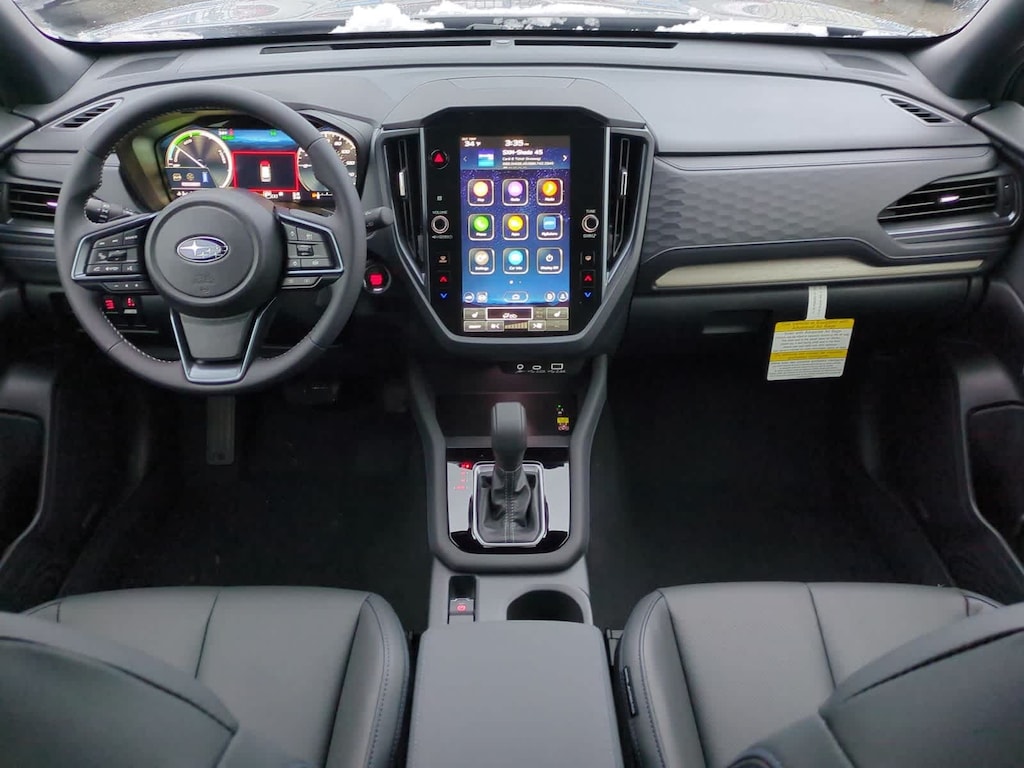 River Rock Pearl 2025 Subaru Forester Hybrid Limited AWD Lineartronic CVT 2.5L 4-Cylinder DOHC 16V 2.5L 4-Cylinder DOHC 16V, 11 Speakers, 4-Wheel Disc Brakes, ABS brakes, Air Conditioning, Alloy wheels, AM/FM radio: SiriusXM with 360L, Anti-whiplash front head restraints, Auto High-beam Headlights, Automatic temperature control, Brake assist, Bumpers: body-color, Compass, Driver door bin, Driver vanity mirror, Dual front impact airbags, Dual front side impact airbags, Electronic Stability Control, Emergency communication system: MySubaru Safety (3-year free trial), Exterior Parking Camera Rear, Four wheel independent suspension, Front anti-roll bar, Front Bucket Seats, Front Center Armrest, Front dual zone A/C, Front fog lights, Front reading lights, Fully automatic headlights, harman/kardonî Speakers, Heated door mirrors, Heated Front Bucket Seats, Heated front seats, Illuminated entry, Knee airbag, Low tire pressure warning, Navigation system: TomTom Navigation w/what3words, Occupant sensing airbag, Outside temperature display, Overhead airbag, Overhead console, Panic alarm, Passenger door bin, Passenger vanity mirror, Power door mirrors, Power driver seat, Power Liftgate, Power moonroof: Panoramic, Power passenger seat, Power steering, Power windows, Radio data system, Radio: Subaru 11.6 Multimedia Navigation System, Rear anti-roll bar, Rear seat center armrest, Rear window defroster, Rear window wiper, Remote keyless entry, Security system, Speed control, Speed-sensing steering, Split folding rear seat, Spoiler, Standard Model, StarTex Upholstery, Steering wheel mounted audio controls, Tachometer, Telescoping steering wheel, Tilt steering wheel, Traction control, Trip computer, Turn signal indicator mirrors, Variably intermittent wipers, Wheels: 18 x 7.0 J Dark Metallic Aluminum-Alloy, 2.5L 4-Cylinder DOHC 16V.