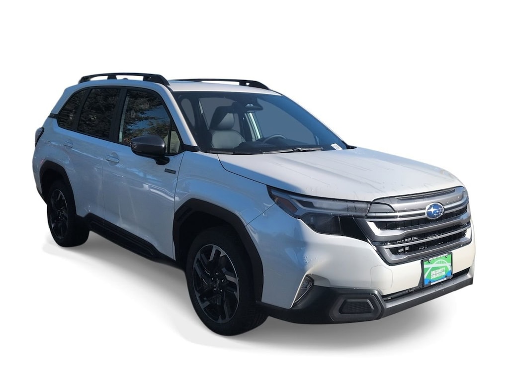 Whc 2025 Subaru Forester Hybrid Limited AWD Lineartronic CVT 2.5L 4-Cylinder DOHC 16V 2.5L 4-Cylinder DOHC 16V, 11 Speakers, 4-Wheel Disc Brakes, ABS brakes, Air Conditioning, All-Weather Floor Liners, Alloy wheels, AM/FM radio: SiriusXM with 360L, Anti-whiplash front head restraints, Auto High-beam Headlights, Auto-Dimming Exterior Mirror with Approach Light, Auto-Dimming Mirror with Compass and HomeLink, Automatic temperature control, Brake assist, Bumpers: body-color, Compass, Crossbar Set - Aero, Driver door bin, Driver vanity mirror, Dual front impact airbags, Dual front side impact airbags, Electronic Stability Control, Emergency communication system: MySubaru Safety (3-year free trial), Exterior Parking Camera Rear, Four wheel independent suspension, Front anti-roll bar, Front Bucket Seats, Front Center Armrest, Front dual zone A/C, Front fog lights, Front reading lights, Fully automatic headlights, harman/kardonî Speakers, Heated door mirrors, Heated Front Bucket Seats, Heated front seats, Illuminated entry, Knee airbag, Low tire pressure warning, Navigation system: TomTom Navigation w/what3words, Occupant sensing airbag, Outside temperature display, Overhead airbag, Overhead console, Panic alarm, Passenger door bin, Passenger vanity mirror, Power door mirrors, Power driver seat, Power Liftgate, Power moonroof: Panoramic, Power passenger seat, Power steering, Power windows, Radio data system, Radio: Subaru 11.6 Multimedia Navigation System, Rear anti-roll bar, Rear Bumper Cover, Rear seat center armrest, Rear Seatback Protector, Rear window defroster, Rear window wiper, Remote keyless entry, Security system, Speed control, Speed-sensing steering, Split folding rear seat, Spoiler, Standard Model, StarTex Upholstery, Steering wheel mounted audio controls, Tachometer, Telescoping steering wheel, Tilt steering wheel, Traction control, Trip computer, Turn signal indicator mirrors, Variably intermittent wipers, Wheels: 18 x 7.0 J Dark Metallic Aluminum-Alloy, 2.5L 4-Cylinder DOHC 16V.