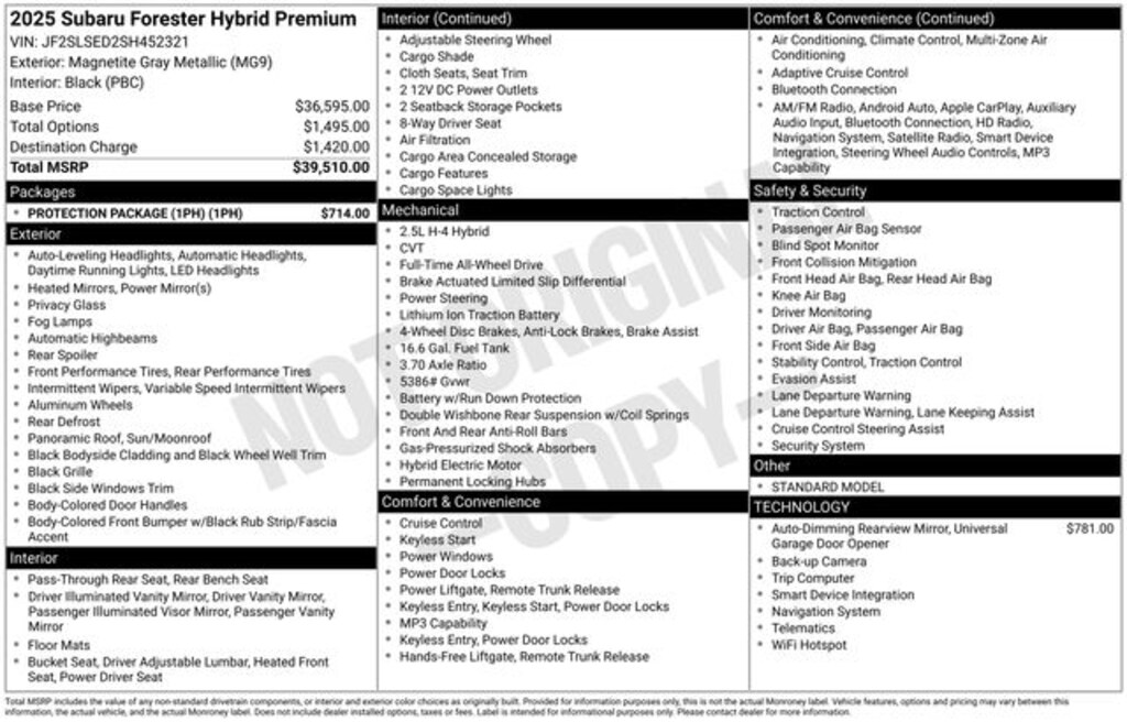 This Forester Hybrid Premium comes equipped with a comprehensive suite of premium upgrades, including: