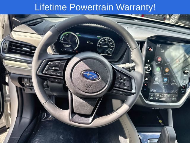 Forester Hybrid Limited is nicely equipped with Standard Model, 11 Speakers, 4-Wheel Disc Brakes, ABS brakes, Air Conditioning, All-Weather Floor Liners, AM/FM radio: SiriusXM with 360L, Auto High-beam Headlights, Automatic temperature control, Brake assist, Cargo Tray, Driver door bin, Driver vanity mirror, Electronic Stability Control, Exterior Parking Camera Rear, Four wheel independent suspension, Front Bucket Seats, Front Center Armrest, Front dual zone A/C, Front fog lights, Front reading lights, Fully automatic headlights, Heated front seats, Illuminated entry, LED Upgrade, Navigation system: TomTom Navigation w/what3words, Outside temperature display, Overhead console, Panic alarm, Passenger door bin, Passenger vanity mirror, Power driver seat, Power Liftgate, Power moonroof: Panoramic, Power passenger seat, Power steering, Power windows, Rear Bumper Cover, Rear seat center armrest, Rear window defroster, Rear window wiper, Remote keyless entry, Security system, Speed control, Speed-sensing steering, Splash Guards, Split folding rear seat, StarTex Upholstery, Steering wheel mounted audio controls, Tachometer, Telescoping steering wheel, Tilt steering wheel, Traction control, Trip computer, Turn signal indicator mirrors, Variably intermittent wipers, Wheels: 18" x 7.0 J Dark Metallic Aluminum-Alloy, Alloy wheels, Anti-whiplash front head restraints, Bumpers: body-color, Center Console Tray, Compass, Dual front impact airbags, Dual front side impact airbags, Front anti-roll bar, harman/kardon® Speakers, Heated door mirrors, Heated Front Bucket Seats, Knee airbag, Low tire pressure warning, Occupant sensing airbag, Overhead airbag, Power door mirrors, Radio data system, Rear anti-roll bar, and Spoiler.