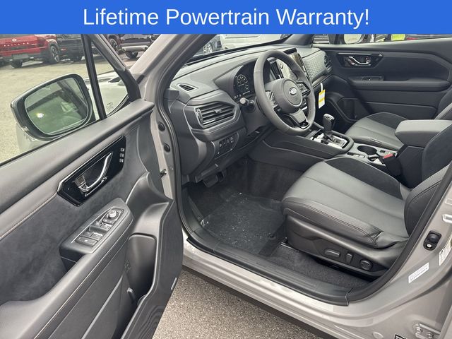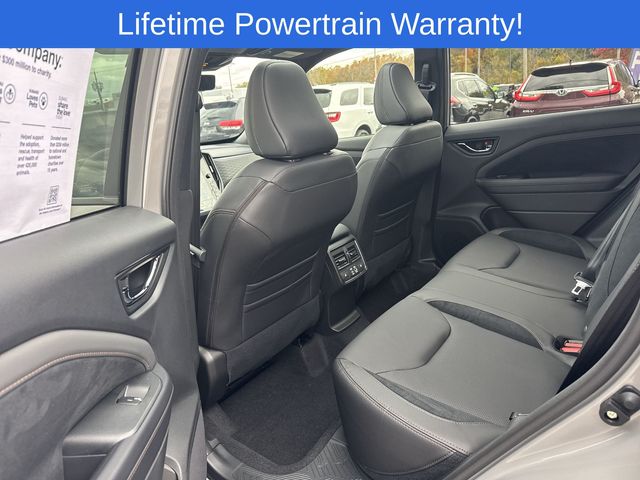 Forester Hybrid Touring is nicely equipped with Standard Model, Touring Package (All-Weather Floor Liners, Body Side Molding - Crystal White Pearl, LED Upgrade, Rear Bumper Cover, and Splash Guards), 11 Speakers, 4-Wheel Disc Brakes, ABS brakes, Air Conditioning, Alloy wheels, AM/FM radio: SiriusXM with 360L, Anti-whiplash front head restraints, Auto High-beam Headlights, Automatic temperature control, Body Side Molding - River Rock Pearl, Brake assist, Bumpers: body-color, Compass, Door Edge Guards - River Rock Pearl, Driver door bin, Driver vanity mirror, Dual front impact airbags, Dual front side impact airbags, Electronic Stability Control, Emergency communication system: MySubaru Safety (3-year free trial), Exterior Parking Camera Rear, Four wheel independent suspension, Front anti-roll bar, Front Bucket Seats, Front Center Armrest, Front dual zone A/C, Front fog lights, Front reading lights, Fully automatic headlights, harman/kardon® Speakers, Heated door mirrors, Heated front seats, Heated rear seats, Heated steering wheel, HVAC memory, Illuminated entry, Knee airbag, Low tire pressure warning, Memory seat, Navigation system: TomTom Navigation w/what3words, Occupant sensing airbag, Outside temperature display, Overhead airbag, Overhead console, Panic alarm, Passenger door bin, Passenger vanity mirror, Perforated Leather-Trimmed Upholstery, Power door mirrors, Power driver seat, Power Liftgate, Power moonroof: Panoramic, Power passenger seat, Power steering, Power windows, Radio data system, Radio: Subaru 11.6" Multimedia Navigation System, Rear anti-roll bar, Rear seat center armrest, Rear window defroster, Rear window wiper, Remote keyless entry, Security system, Speed control, Speed-sensing steering, Split folding rear seat, Spoiler, Steering wheel mounted audio controls, Tachometer, Telescoping steering wheel, Tilt steering wheel, Traction control, Trip computer, Turn signal indicator mirrors, Variably intermittent wipers, Ventilated front seats, and Wheels: 19" x 7.5 J Dark Gray Aluminum-Alloy.