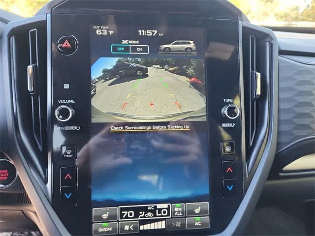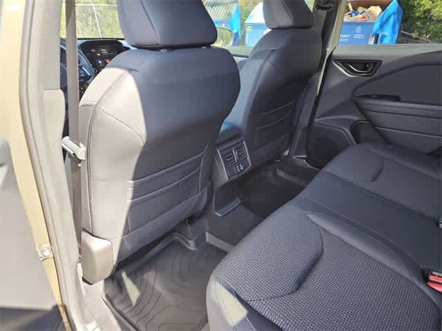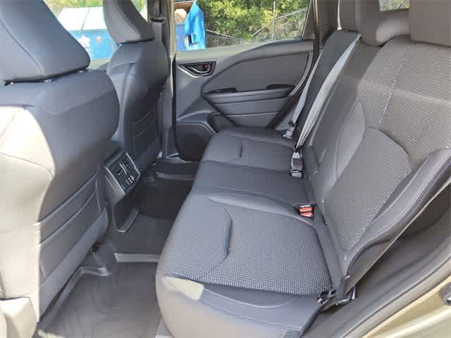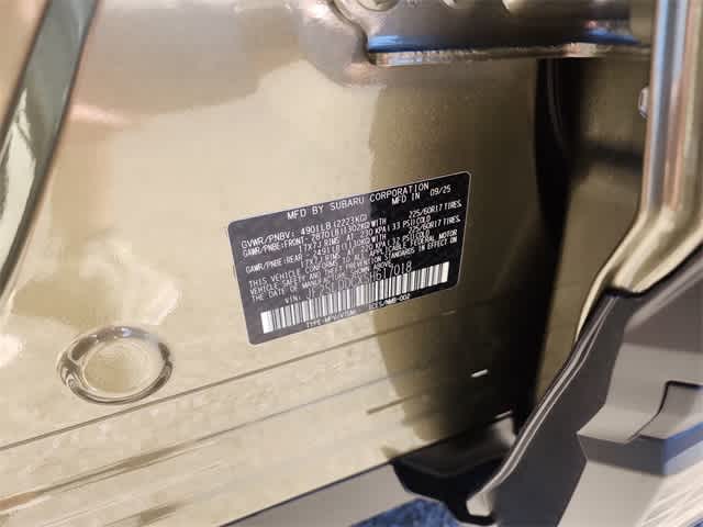 This 2025 Subaru Forester Premium in Autumn Green Metallic, features Power Rear Gate & Blind Spot Detection w/RCTA (Automatic Emergency Steering, Blind-Spot Detection (BSD)/RCTA System, and Power Rear Gate), Protection Package (All-Weather Floor Liners, Cargo Tray, Rear Bumper Cover, and Splash Guards), 4-Wheel Disc Brakes, 6 Speakers, ABS brakes, Air Conditioning, Alloy wheels, AM/FM radio: SiriusXM with 360L, Anti-whiplash front head restraints, Auto High-beam Headlights, Automatic temperature control, Brake assist, Bumpers: body-color, Driver door bin, Driver vanity mirror, Dual front impact airbags, Dual front side impact airbags, Electronic Stability Control, Emergency communication system: MySubaru Safety (3-year free trial), Exterior Parking Camera Rear, Four wheel independent suspension, Front anti-roll bar, Front Bucket Seats, Front Center Armrest, Front dual zone A/C, Front fog lights, Front reading lights, Fully automatic headlights, Heated door mirrors, Heated Front Bucket Seats, Heated front seats, Illuminated entry, Knee airbag, Leather steering wheel, Low tire pressure warning, Occupant sensing airbag, Outside temperature display, Overhead airbag, Overhead console, Panic alarm, Passenger door bin, Passenger vanity mirror, Power door mirrors, Power driver seat, Power moonroof: Panoramic, Power steering, Power windows, Premium Textured Cloth Upholstery, Radio data system, Radio: Subaru 11.6 Multimedia Plus System, Rear anti-roll bar, Rear seat center armrest, Rear Seatback Protector, Rear window defroster, Rear window wiper, Remote keyless entry, Security system, Speed control, Speed-sensing steering, Split folding rear seat, Spoiler, Steering wheel mounted audio controls, Tachometer, Telescoping steering wheel, Tilt steering wheel, Traction control, Trip computer, Variably intermittent wipers, and Wheels: 17 x 7.0 J Dark Metallic Aluminum-Alloy: Premium AWD