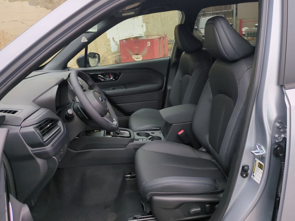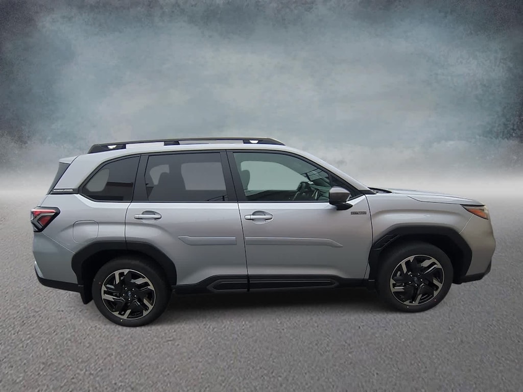 Ice Silver Metallic 2025 Subaru Forester Hybrid Limited AWD Lineartronic CVT 2.5L 4-Cylinder DOHC 16V 2.5L 4-Cylinder DOHC 16V, 11 Speakers, 4-Wheel Disc Brakes, ABS brakes, Air Conditioning, Alloy wheels, AM/FM radio: SiriusXM with 360L, Anti-whiplash front head restraints, Auto High-beam Headlights, Automatic temperature control, Brake assist, Bumpers: body-color, Compass, Driver door bin, Driver vanity mirror, Dual front impact airbags, Dual front side impact airbags, Electronic Stability Control, Emergency communication system: MySubaru Safety (3-year free trial), Exterior Parking Camera Rear, Four wheel independent suspension, Front anti-roll bar, Front Bucket Seats, Front Center Armrest, Front dual zone A/C, Front fog lights, Front reading lights, Fully automatic headlights, harman/kardonî Speakers, Heated door mirrors, Heated Front Bucket Seats, Heated front seats, Illuminated entry, Knee airbag, Low tire pressure warning, Navigation system: TomTom Navigation w/what3words, Occupant sensing airbag, Outside temperature display, Overhead airbag, Overhead console, Panic alarm, Passenger door bin, Passenger vanity mirror, Power door mirrors, Power driver seat, Power Liftgate, Power moonroof: Panoramic, Power passenger seat, Power steering, Power windows, Radio data system, Radio: Subaru 11.6 Multimedia Navigation System, Rear anti-roll bar, Rear seat center armrest, Rear window defroster, Rear window wiper, Remote keyless entry, Security system, Speed control, Speed-sensing steering, Split folding rear seat, Spoiler, Standard Model, StarTex Upholstery, Steering wheel mounted audio controls, Tachometer, Telescoping steering wheel, Tilt steering wheel, Traction control, Trip computer, Turn signal indicator mirrors, Variably intermittent wipers, Wheels: 18 x 7.0 J Dark Metallic Aluminum-Alloy, 2.5L 4-Cylinder DOHC 16V.