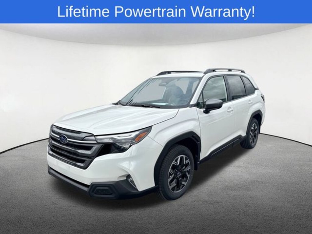 Crystal White Pearl 2025 Subaru Forester Premium 4D Sport Utility AWD Lineartronic CVT 2.5L 4-Cylinder DOHC 16V 26/33 City/Highway MPG