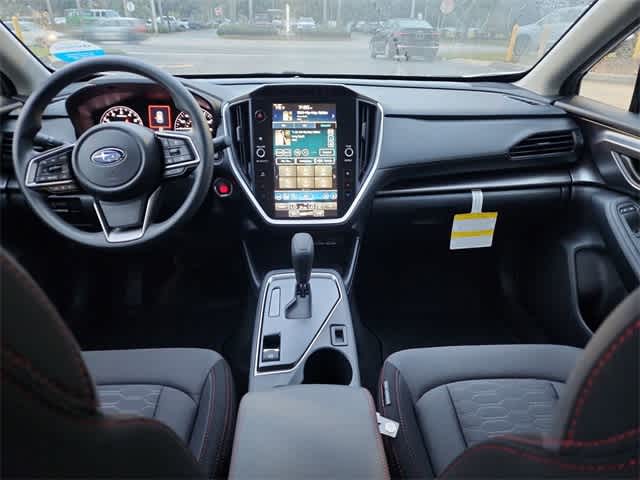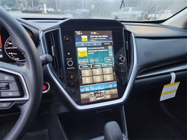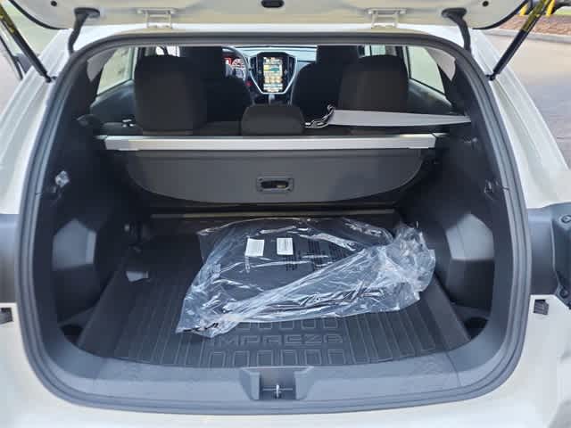 This 2025 Subaru Impreza Sport in Crystal White Pearl, features Standard Model, 4-Wheel Disc Brakes, 6 Speakers, ABS brakes, Air Conditioning, All-Weather Floor Liners, Alloy wheels, AM/FM radio: SiriusXM with 360L, Anti-whiplash front head restraints, Auto High-beam Headlights, Automatic temperature control, Brake assist, Bumpers: body-color, Cargo Cover, Cargo Tray, Driver door bin, Driver vanity mirror, Dual front impact airbags, Dual front side impact airbags, Electronic Stability Control, Emergency communication system, Exterior Parking Camera Rear, Four wheel independent suspension, Front anti-roll bar, Front Bucket Seats, Front Center Armrest, Front dual zone A/C, Front fog lights, Front reading lights, Fully automatic headlights, Illuminated entry, Knee airbag, Low tire pressure warning, Occupant sensing airbag, Outside temperature display, Overhead airbag, Overhead console, Panic alarm, Passenger door bin, Passenger vanity mirror, Power door mirrors, Power steering, Power windows, Premium Sport Cloth Upholstery, Radio data system, Radio: Subaru 11.6 Multimedia Plus System, Rear anti-roll bar, Rear Bumper Applique, Rear seat center armrest, Rear Seatback Protector, Rear window defroster, Rear window wiper, Remote keyless entry, Security system, Speed control, Speed-sensing steering, Splash Guards, Split folding rear seat, Spoiler, Steering wheel mounted audio controls, Tachometer, Telescoping steering wheel, Tilt steering wheel, Traction control, Trip computer, Turn signal indicator mirrors, Variably intermittent wipers, and Wheels: 18 x 7.0 J Machine Finish Aluminum-Alloy: Sport AWD