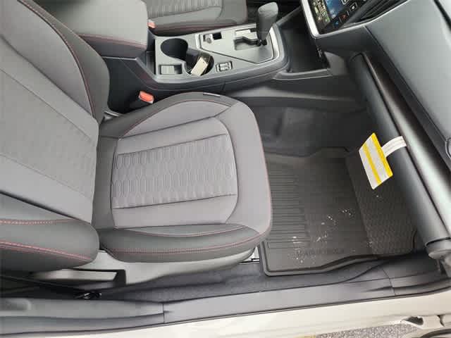 This 2025 Subaru Impreza Sport in Crystal White Pearl, features All Weather Package (Dual-Mode Heated Front Seats, Heated Exterior Power Mirrors, and Windshield Wiper De-Icer), BSD/RCTA & All Weather Pkg & Power Moonroof (Blind Spot Detection (BSD), Power Moonroof, Rear Cross-Traffic Alert (RCTA) System, and Sun Visors w/Vanity Mirror & Lights), 4-Wheel Disc Brakes, 6 Speakers, ABS brakes, Air Conditioning, All-Weather Floor Liners, Alloy wheels, AM/FM radio: SiriusXM with 360L, Anti-whiplash front head restraints, Auto High-beam Headlights, Automatic temperature control, Brake assist, Bumpers: body-color, Cargo Tray, Driver door bin, Driver vanity mirror, Dual front impact airbags, Dual front side impact airbags, Electronic Stability Control, Emergency communication system, Exterior Parking Camera Rear, Four wheel independent suspension, Front anti-roll bar, Front Bucket Seats, Front Center Armrest, Front dual zone A/C, Front fog lights, Front reading lights, Fully automatic headlights, Illuminated entry, Knee airbag, Low tire pressure warning, Occupant sensing airbag, Outside temperature display, Overhead airbag, Overhead console, Panic alarm, Passenger door bin, Passenger vanity mirror, Power door mirrors, Power steering, Power windows, Premium Sport Cloth Upholstery, Radio data system, Radio: Subaru 11.6 Multimedia Plus System, Rear anti-roll bar, Rear Bumper Applique, Rear seat center armrest, Rear Seatback Protector, Rear window defroster, Rear window wiper, Remote keyless entry, Security system, Speed control, Speed-sensing steering, Splash Guards, Split folding rear seat, Spoiler, Steering wheel mounted audio controls, Tachometer, Telescoping steering wheel, Tilt steering wheel, Traction control, Trip computer, Turn signal indicator mirrors, Variably intermittent wipers, and Wheels: 18 x 7.0 J Machine Finish Aluminum-Alloy: Sport AWD