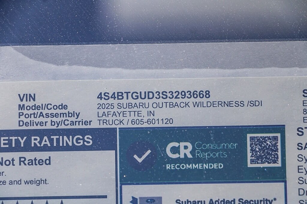 This 2025 Subaru Outback Wilderness is finished in the Crystal White Pearl exterior paint and Gray Premium Synthetic interior.