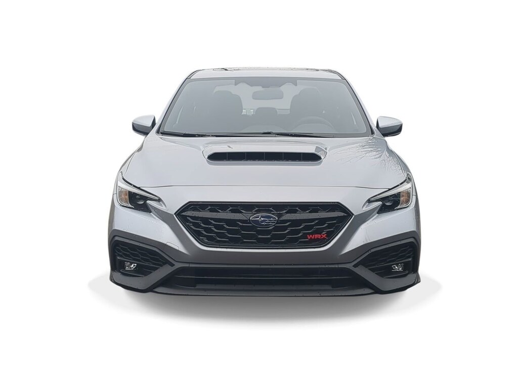 Ice Silver Metallic 2025 Subaru WRX Premium AWD 6-Speed Manual 2.4L DOHC 4-Wheel Disc Brakes, 6 Speakers, ABS brakes, Air Conditioning, Alloy wheels, AM/FM radio: SiriusXM, Auto High-beam Headlights, Automatic temperature control, Brake assist, Bumpers: body-color, Driver door bin, Driver vanity mirror, Dual front impact airbags, Dual front side impact airbags, Electronic Stability Control, Emergency communication system, Exterior Parking Camera Rear, Four wheel independent suspension, Front anti-roll bar, Front Bucket Seats, Front Center Armrest, Front dual zone A/C, Front fog lights, Front reading lights, Fully automatic headlights, Heated door mirrors, Heated front seats, Illuminated entry, Knee airbag, Leather Shift Knob, Leather steering wheel, Low tire pressure warning, Occupant sensing airbag, Outside temperature display, Overhead airbag, Overhead console, Panic alarm, Passenger door bin, Passenger vanity mirror, Performance Design Heated Front Bucket Seats, Power door mirrors, Power steering, Power windows, Premium Cloth Upholstery w/Red Stitching, Radio data system, Radio: Subaru 11.6 Multimedia Plus System, Rear anti-roll bar, Rear seat center armrest, Rear window defroster, Remote keyless entry, Security system, Speed control, Speed-sensing steering, Split folding rear seat, Spoiler, Sport steering wheel, Steering wheel mounted audio controls, Tachometer, Telescoping steering wheel, Tilt steering wheel, Traction control, Trip computer, Variably intermittent wipers, Wheels: 18 x 8.5 Dark Gray Finish Alum Alloy.