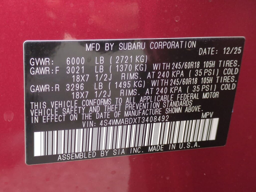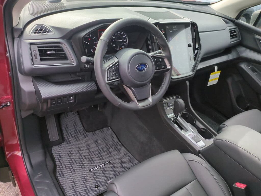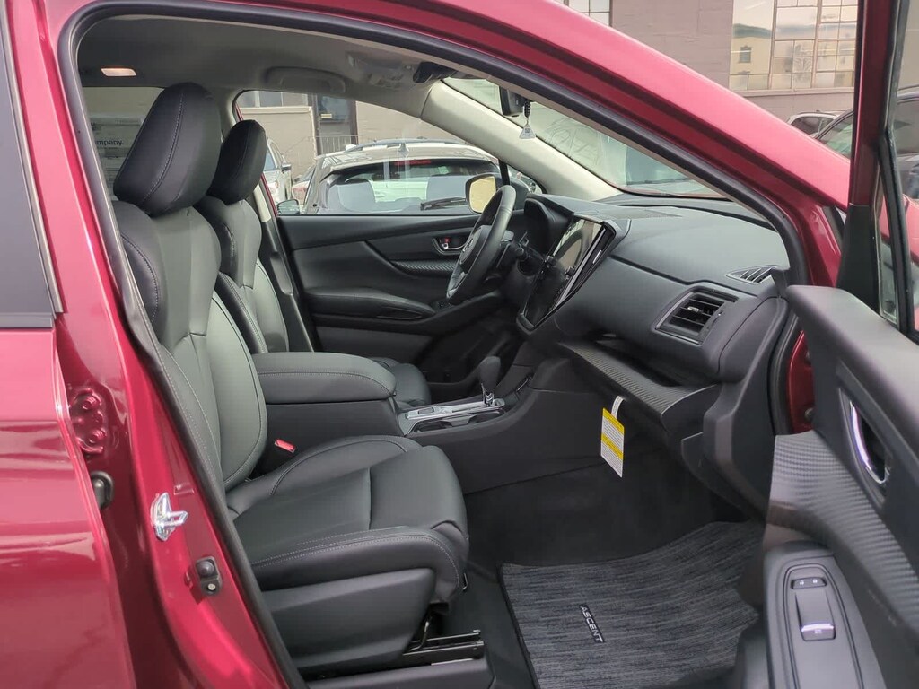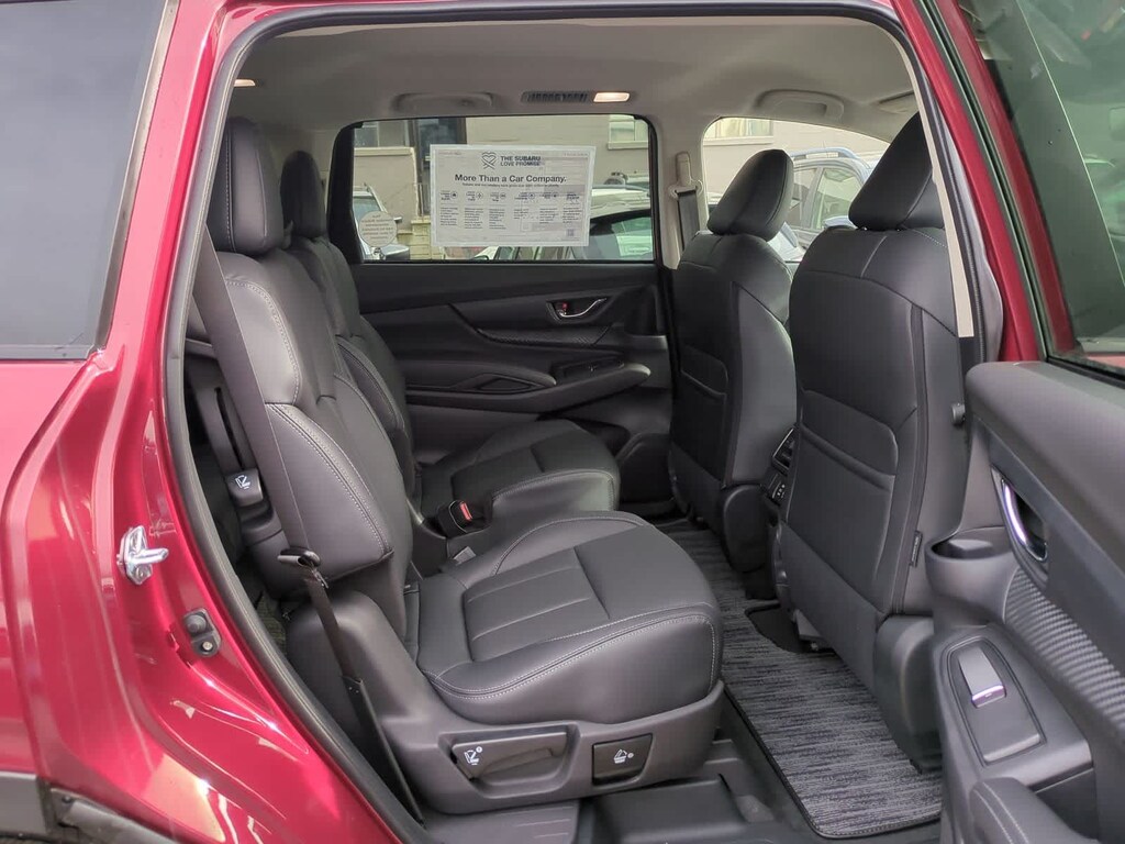 Crimson Red Pearl 2026 Subaru Ascent Premium AWD Lineartronic CVT 2.4L 4-Cylinder DOHC 16V 3rd row seats: bench, 4-Wheel Disc Brakes, 6 Speakers, ABS brakes, Air Conditioning, Alloy wheels, AM/FM radio: SiriusXM with 360L, Apple CarPlay & Android Auto, Auto High-beam Headlights, Auto-dimming Rear-View mirror, Automatic temperature control, Brake assist, Bumpers: body-color, Compass, Delay-off headlights, Driver door bin, Driver vanity mirror, Dual front impact airbags, Dual front side impact airbags, Electronic Stability Control, Emergency communication system: MySubaru Companion (5-years free), Exterior Parking Camera Rear, Four wheel independent suspension, Front anti-roll bar, Front Bucket Seats, Front Center Armrest, Front dual zone A/C, Front fog lights, Front reading lights, Fully automatic headlights, Garage door transmitter: HomeLink, Heated door mirrors, Heated Front Bucket Seats, Heated front seats, Illuminated entry, Knee airbag, Leather Shift Knob, Leather steering wheel, Low tire pressure warning, Occupant sensing airbag, Outside temperature display, Overhead airbag, Overhead console, Panic alarm, Passenger door bin, Passenger vanity mirror, Power door mirrors, Power driver seat, Power Liftgate, Power steering, Power windows, Radio data system, Radio: Subaru 11.6 Multimedia Plus System, Rear air conditioning, Rear anti-roll bar, Rear reading lights, Rear window defroster, Rear window wiper, Reclining 3rd row seat, Remote keyless entry, Security system, Speed control, Speed-sensing steering, Split folding rear seat, Spoiler, StarTex-Trimmed Upholstery, Steering wheel mounted audio controls, Tachometer, Telescoping steering wheel, Tilt steering wheel, Traction control, Trip computer, Turn signal indicator mirrors, Variably intermittent wipers, Wheels: 18 x 7.5 J Black Finish Aluminum Alloy.