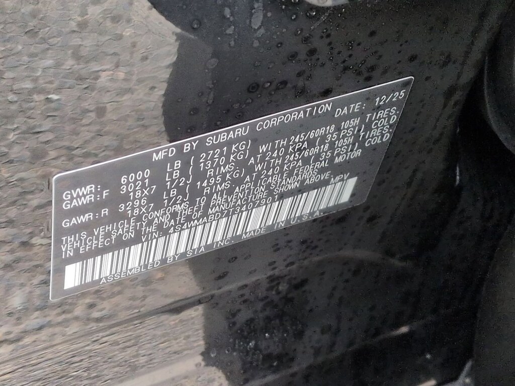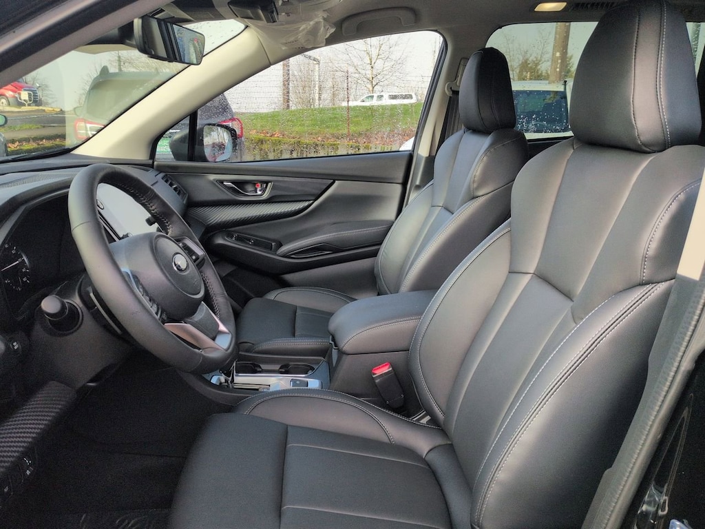 Crystal Black Silica 2026 Subaru Ascent Premium AWD Lineartronic CVT 2.4L 4-Cylinder DOHC 16V 3rd row seats: bench, 4-Wheel Disc Brakes, 6 Speakers, ABS brakes, Air Conditioning, Alloy wheels, AM/FM radio: SiriusXM with 360L, Apple CarPlay & Android Auto, Auto High-beam Headlights, Auto-dimming Rear-View mirror, Automatic temperature control, Brake assist, Bumpers: body-color, Compass, Delay-off headlights, Driver door bin, Driver vanity mirror, Dual front impact airbags, Dual front side impact airbags, Electronic Stability Control, Emergency communication system: MySubaru Companion (5-years free), Exterior Parking Camera Rear, Four wheel independent suspension, Front anti-roll bar, Front Bucket Seats, Front Center Armrest, Front dual zone A/C, Front fog lights, Front reading lights, Fully automatic headlights, Garage door transmitter: HomeLink, Heated door mirrors, Heated Front Bucket Seats, Heated front seats, Illuminated entry, Knee airbag, Leather Shift Knob, Leather steering wheel, Low tire pressure warning, Occupant sensing airbag, Outside temperature display, Overhead airbag, Overhead console, Panic alarm, Passenger door bin, Passenger vanity mirror, Power door mirrors, Power driver seat, Power Liftgate, Power steering, Power windows, Radio data system, Radio: Subaru 11.6 Multimedia Plus System, Rear air conditioning, Rear anti-roll bar, Rear reading lights, Rear window defroster, Rear window wiper, Reclining 3rd row seat, Remote keyless entry, Security system, Speed control, Speed-sensing steering, Split folding rear seat, Spoiler, Standard Model, StarTex-Trimmed Upholstery, Steering wheel mounted audio controls, Tachometer, Telescoping steering wheel, Tilt steering wheel, Traction control, Trip computer, Turn signal indicator mirrors, Variably intermittent wipers, Wheels: 18 x 7.5 J Black Finish Aluminum Alloy.