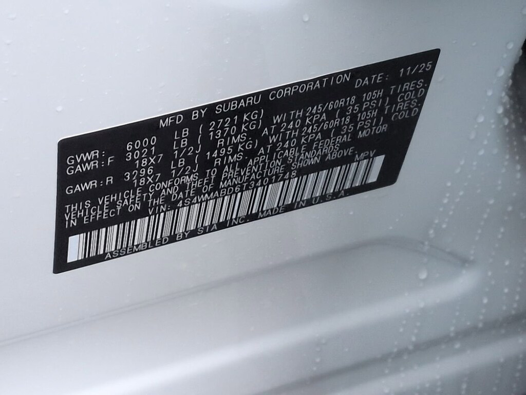 Crystal White Pearl 2026 Subaru Ascent Premium AWD Lineartronic CVT 2.4L 4-Cylinder DOHC 16V 3rd row seats: bench, 4-Wheel Disc Brakes, 6 Speakers, ABS brakes, Air Conditioning, All-Weather Floor Liners, Alloy wheels, AM/FM radio: SiriusXM with 360L, Apple CarPlay & Android Auto, Auto High-beam Headlights, Auto-dimming Rear-View mirror, Automatic temperature control, Black Chrome Rear Bumper Cover, Brake assist, Bumpers: body-color, Cargo Tray, Compass, Delay-off headlights, Driver door bin, Driver vanity mirror, Dual front impact airbags, Dual front side impact airbags, Electronic Stability Control, Emergency communication system: MySubaru Companion (5-years free), Exterior Parking Camera Rear, Four wheel independent suspension, Front anti-roll bar, Front Bucket Seats, Front Center Armrest, Front dual zone A/C, Front fog lights, Front reading lights, Fully automatic headlights, Garage door transmitter: HomeLink, Heated door mirrors, Heated Front Bucket Seats, Heated front seats, Illuminated entry, Knee airbag, Leather Shift Knob, Leather steering wheel, Low tire pressure warning, Occupant sensing airbag, Outside temperature display, Overhead airbag, Overhead console, Panic alarm, Passenger door bin, Passenger vanity mirror, Power door mirrors, Power driver seat, Power Liftgate, Power steering, Power windows, Radio data system, Radio: Subaru 11.6 Multimedia Plus System, Rear air conditioning, Rear anti-roll bar, Rear reading lights, Rear window defroster, Rear window wiper, Reclining 3rd row seat, Remote keyless entry, Security system, Speed control, Speed-sensing steering, Split folding rear seat, Spoiler, Standard Model, StarTex-Trimmed Upholstery, Steering wheel mounted audio controls, Tachometer, Telescoping steering wheel, Tilt steering wheel, Traction control, Trip computer, Turn signal indicator mirrors, Variably intermittent wipers, Wheels: 18 x 7.5 J Black Finish Aluminum Alloy.