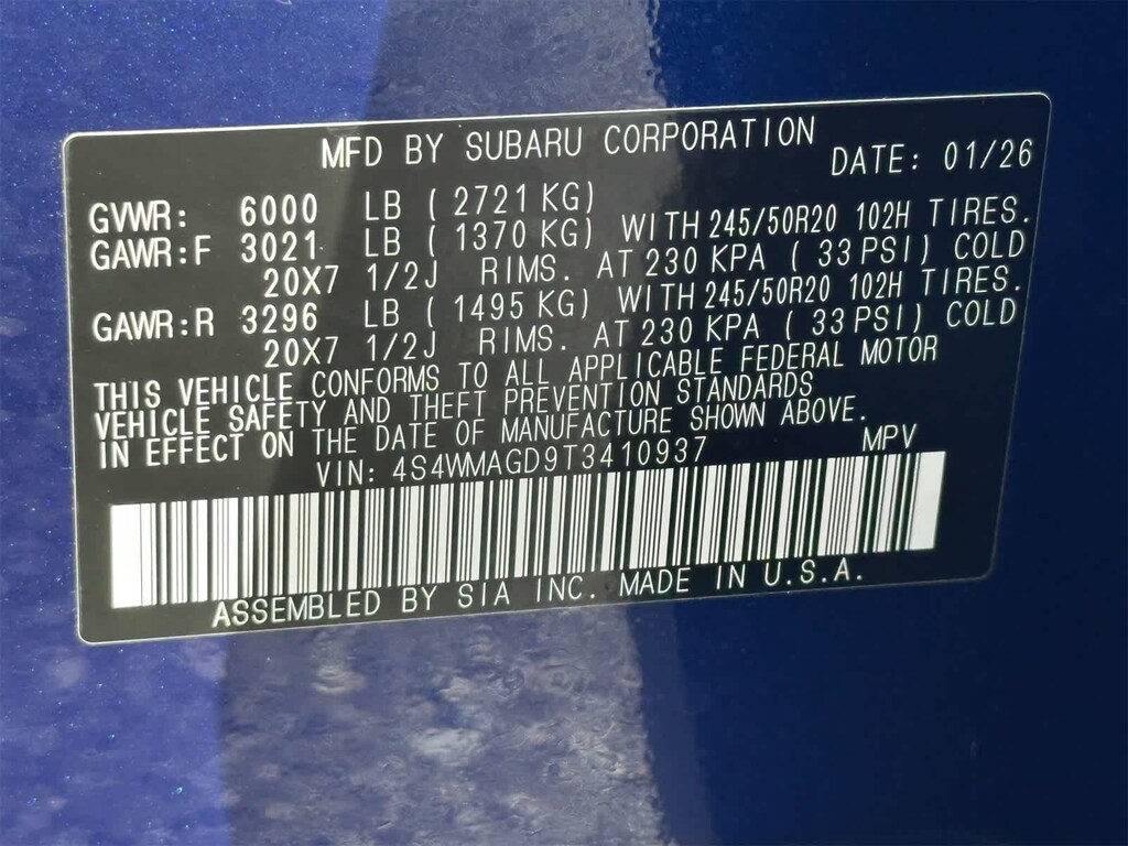 Leather Seats, Third Row Seat, Navigation, Sunroof, Panoramic Roof Subaru Limited with Sapphire Blue Pearl exterior and Slate Black interior features a 4 Cylinder Engine with 260 HP at 5600 RPM*.
