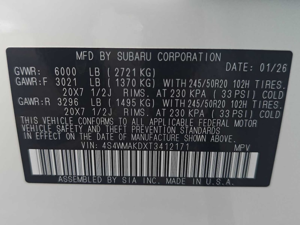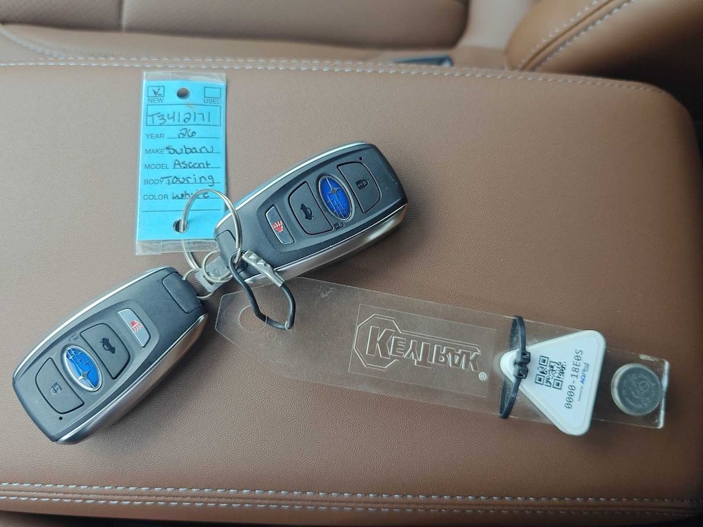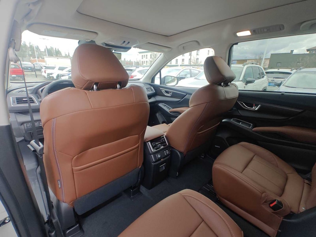 Crystal White Pearl 2026 Subaru Ascent Touring AWD Lineartronic CVT 2.4L 4-Cylinder DOHC 16V 14 Speakers, 3rd row seats: bench, 4-Wheel Disc Brakes, ABS brakes, Air Conditioning, Alloy wheels, AM/FM radio: SiriusXM with 360L, Apple CarPlay & Android Auto, Auto High-beam Headlights, Auto-dimming Rear-View mirror, Automatic temperature control, Brake assist, Bumpers: body-color, Compass, Delay-off headlights, Driver door bin, Driver vanity mirror, Dual front impact airbags, Dual front side impact airbags, Electronic Stability Control, Emergency communication system: MySubaru Companion (5-years free), Exterior Parking Camera Rear, Four wheel independent suspension, Front anti-roll bar, Front Bucket Seats, Front Center Armrest, Front dual zone A/C, Front fog lights, Front reading lights, Fully automatic headlights, Garage door transmitter: HomeLink, harman/kardonî Speakers, Heated and Ventilated Front Bucket Seats, Heated door mirrors, Heated front seats, Heated rear seats, Heated steering wheel, HVAC memory, Illuminated entry, Knee airbag, Leather Shift Knob, Leather steering wheel, Low tire pressure warning, Memory seat, Navigation system: MySubaru Navigator (1-year trial), Occupant sensing airbag, Outside temperature display, Overhead airbag, Overhead console, Panic alarm, Passenger door bin, Passenger vanity mirror, Perforated Nappa Leather-Trimmed Upholstery, Power door mirrors, Power driver seat, Power Liftgate, Power moonroof, Power passenger seat, Power steering, Power windows, Radio data system, Radio: Subaru 11.6 Multimedia System with Navigation, Rain sensing wipers, Rear air conditioning, Rear anti-roll bar, Rear reading lights, Rear window defroster, Rear window wiper, Reclining 3rd row seat, Remote keyless entry, Security system, Speed control, Speed-sensing steering, Split folding rear seat, Spoiler, Steering wheel mounted audio controls, Tachometer, Telescoping steering wheel, Tilt steering wheel, Traction control, Trip computer, Turn signal indicator mirrors, Variably intermittent wipers, Ventilated front seats, Wheels: 20 x 7.5 J Dark Gray Alloy with Machine Finish.