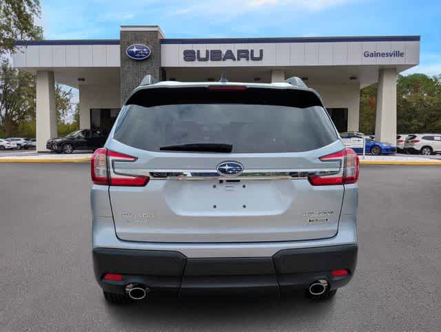 This 2026 Subaru Ascent Touring in Ice Silver Metallic, features Standard Model, 14 Speakers, 3rd row seats: bench, 4-Wheel Disc Brakes, ABS brakes, Air Conditioning, Alloy wheels, AM/FM radio: SiriusXM with 360L, Apple CarPlay & Android Auto, Auto High-beam Headlights, Auto-Dimming Exterior Mirror with Approach Light, Auto-dimming Rear-View mirror, Automatic temperature control, Brake assist, Bumpers: body-color, Cargo Tray, Compass, Delay-off headlights, Driver door bin, Driver vanity mirror, Dual front impact airbags, Dual front side impact airbags, Electronic Stability Control, Emergency communication system: MySubaru Companion (5-years free), Exterior Parking Camera Rear, Four wheel independent suspension, Front anti-roll bar, Front Bucket Seats, Front Center Armrest, Front dual zone A/C, Front fog lights, Front reading lights, Fully automatic headlights, Garage door transmitter: HomeLink, harman/kardonî Speakers, Heated and Ventilated Front Bucket Seats, Heated door mirrors, Heated front seats, Heated rear seats, Heated steering wheel, HVAC memory, Illuminated entry, Knee airbag, Leather Shift Knob, Leather steering wheel, LED Cargo Area Lighting, LED Upgrade, Low tire pressure warning, Memory seat, Navigation system: MySubaru Navigator (1-year trial), Occupant sensing airbag, Outside temperature display, Overhead airbag, Overhead console, Panic alarm, Passenger door bin, Passenger vanity mirror, Perforated Nappa Leather-Trimmed Upholstery, Power door mirrors, Power driver seat, Power Liftgate, Power moonroof, Power passenger seat, Power steering, Power windows, Radio data system, Radio: Subaru 11.6 Multimedia System with Navigation, Rain sensing wipers, Rear air conditioning, Rear anti-roll bar, Rear reading lights, Rear window defroster, Rear window wiper, Reclining 3rd row seat, Remote keyless entry, Security system, Speed control, Speed-sensing steering, Split folding rear seat, Spoiler, Steering wheel mounted audio controls, Tachometer, Telescoping steering wheel, Tilt steering wheel, Traction control, Trip computer, Turn signal indicator mirrors, Variably intermittent wipers, Ventilated front seats, and Wheels: 20 x 7.5 J Dark Gray Alloy with Machine Finish: Touring AWD